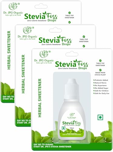 Dr. JPG Organic Stevia Drops Liquid 10ml / Extract Stevia Drops/Pure Natural Plant Based Sweetner/Natural Sweetner. (Pack of 3)