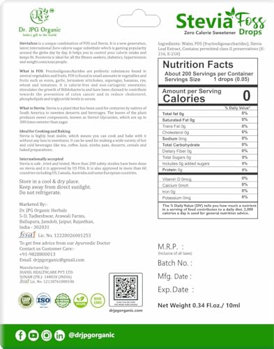 Dr. JPG Organic Stevia Drops is a natural sweetener extracted from Natural stevia Leaf.