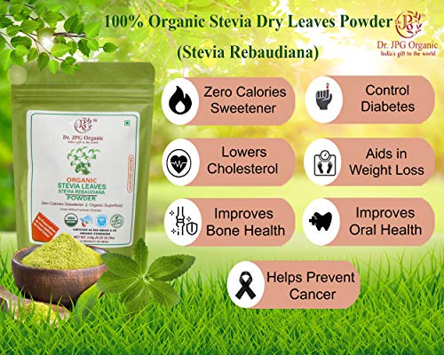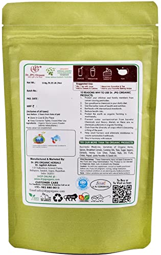 Dr. JPG Organic Stevia Green Powder 228g Stevia Rebaudiana/INDIA ORGANIC Certified (114g Pack of 2)