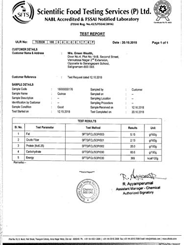 A complete plant-based protein that is 100% absorbable by human body organic white quinoa is probably the most popular type of organic quinoa due to its higher nutritional value. It contains all essential amino acids along with an extensive range of natural minerals and vitamins. In addition to being a rich source of protein and fibre it is an excellent source of carbohydrates iron magnesium phosphorus manganese folate or Vitamin B9 and various phytochemicals. While its higher protein and fibre content will keep you fuller for longer the significant iron content will enhance your body?s oxygen transport system. It will eventually provide you with improved energy levels boosting overall stamina. Abundance of manganese in organic white quinoa will help in regulation blood sugar levels as well as maintenance of the wellbeing of bones. This low-fat organic white quinoa will also help in maintaining lower cholesterol levels.