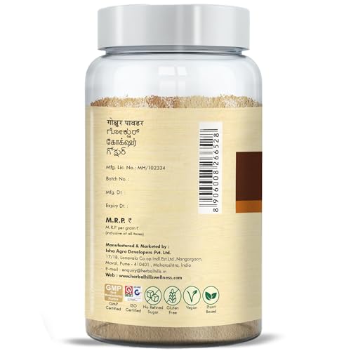 Herbal Hills is a leading Manufacturer Supplier & Wholesaler in India of Ayurvedic product Gokshur powder. Gokshura mens wellness powder is also called as Gokhru or Gokshur Churna and is botanically known as Tribulus terrestris. Our product contains the most natural and effective formulation of trusted natural ingredients that are carefully processed and manufactured in a GMP certified manufacturing facility so you can be sure that youre safe. Gokshura mens wellness is a natural herbal alternative to synthetic anabolic hormones without any clinically proven toxic effects. Gokshura powder is made from the fruit of Tribulus terrestris. It has revitalising diuretic & aphrodisiac properties. It also has anti-inflammatory properties.