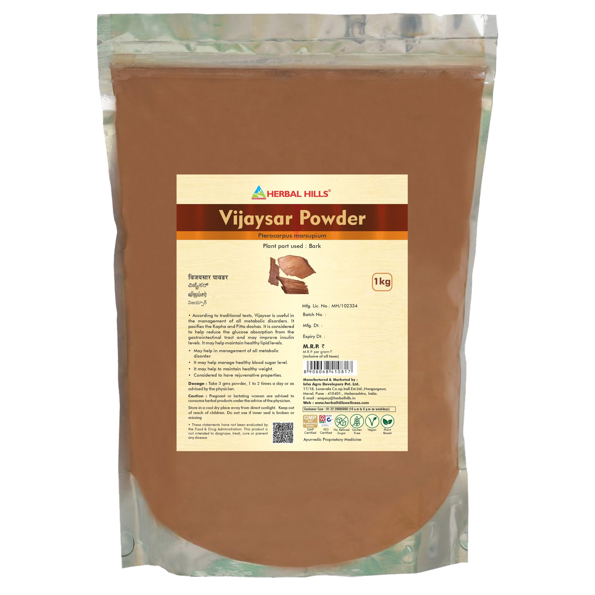 Herbal Hills is a leading Manufacturer Supplier & Wholesaler in India of Ayurvedic product Vijaysar wood powder. Vijaysar powder is also called as Indian kino powder & botanically known as Pterocarpus marsupium which is synergistically processed with highly advanced technology. Our products are made out of best quality and authentic Ayurvedic herbs available in India which are specially selected and manually graded to give best results. Vijaysar may manage healthy Sugr levels. Our Vijaysar powder is made from the bark of Pterocarpus marsupium. It contains anti-hyperlipdemic anti-Diabet and hypoglycemic properties. It pacifies the Kapha and Pitta dosha.