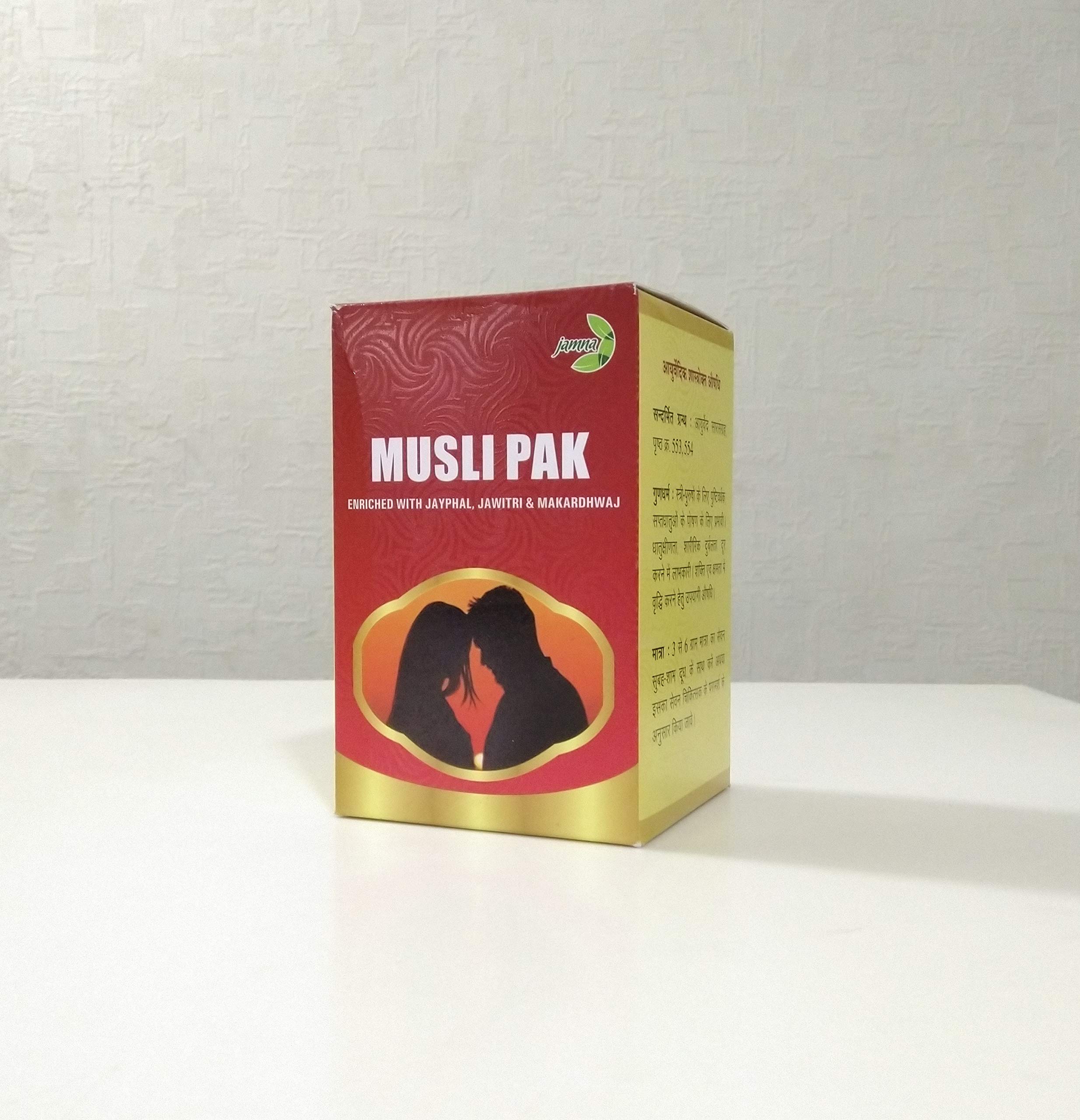 Jamna's Musli Pak is enriched with Jaiphal Javitri Makardhwaj. This pak is nutritive vigor-semen promoting & eunuchoidism-subversive in effect. This Pak is very effective in making the body healthy & vigorous by eliminating Semen-Atrophy. Also effective in dysfunctional menorrhagia. It is effective in debility due to Semen-Atrophy.