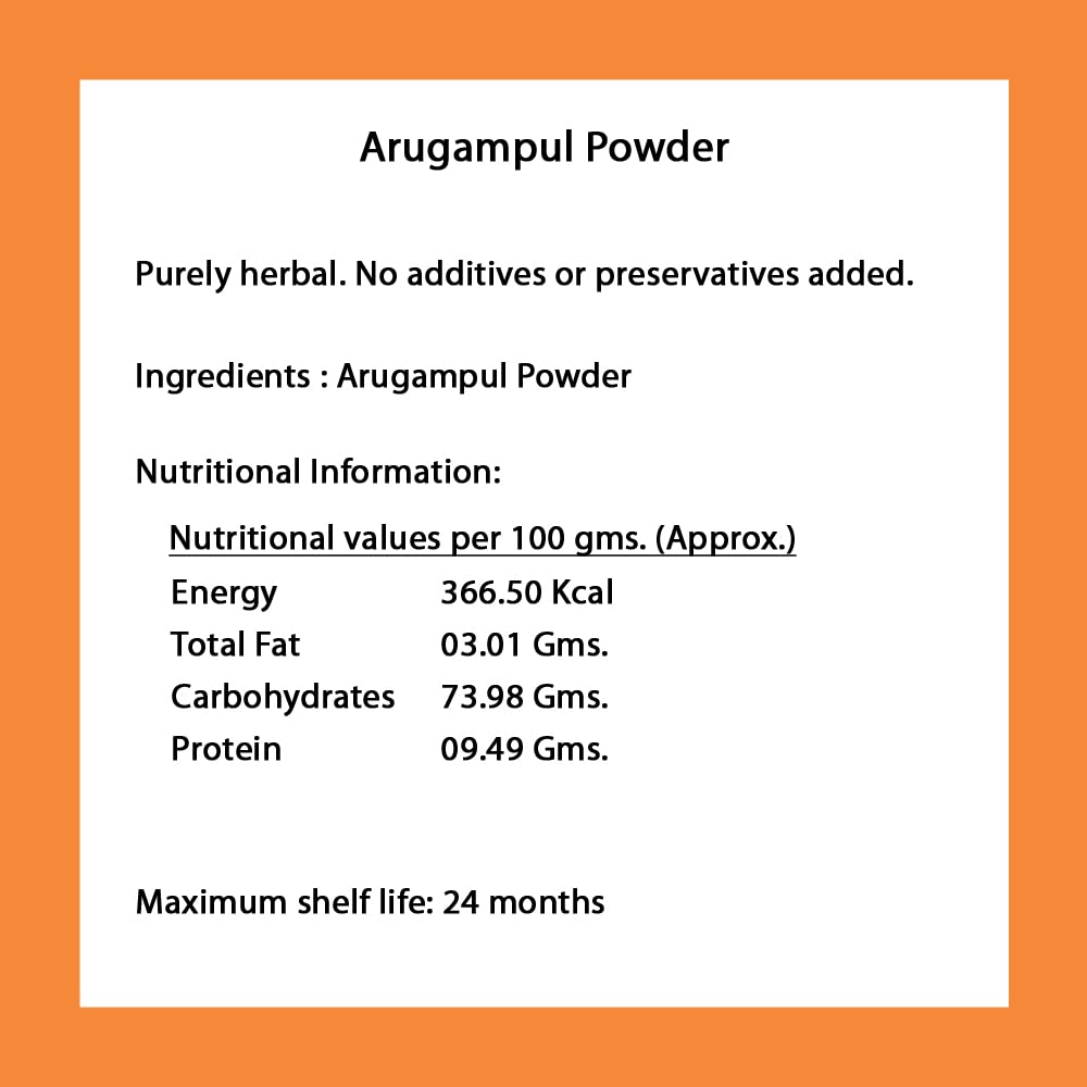 Arukampul Powder (Bermuda Grass Powder) is a natural herbal product derived from the dried and finely ground blades of Arukampul known scientifically as Cynodon dactylon. This nutrient-rich grass has been revered in traditional medicine for its detoxifying healing and rejuvenating properties.Arukampul powder is widely used to cleanse the blood promote healthy skin and improve overall vitality. Its natural diuretic properties help in flushing out supporting kidney health and regulating digestion. It is also known to boost immunity maintain blood sugar levels and provide relief from respiratory issues like asthma and cough.Rich in chlorophyll antioxidants and essential nutrients it contributes to overall well-being and serves as a natural remedy for combating fatigue and promoting energy. It can be consumed as a drink mixed with water or juice or added to face packs for skin benefits. Its versatile benefits make it a valuable addition to daily health and wellness routines.