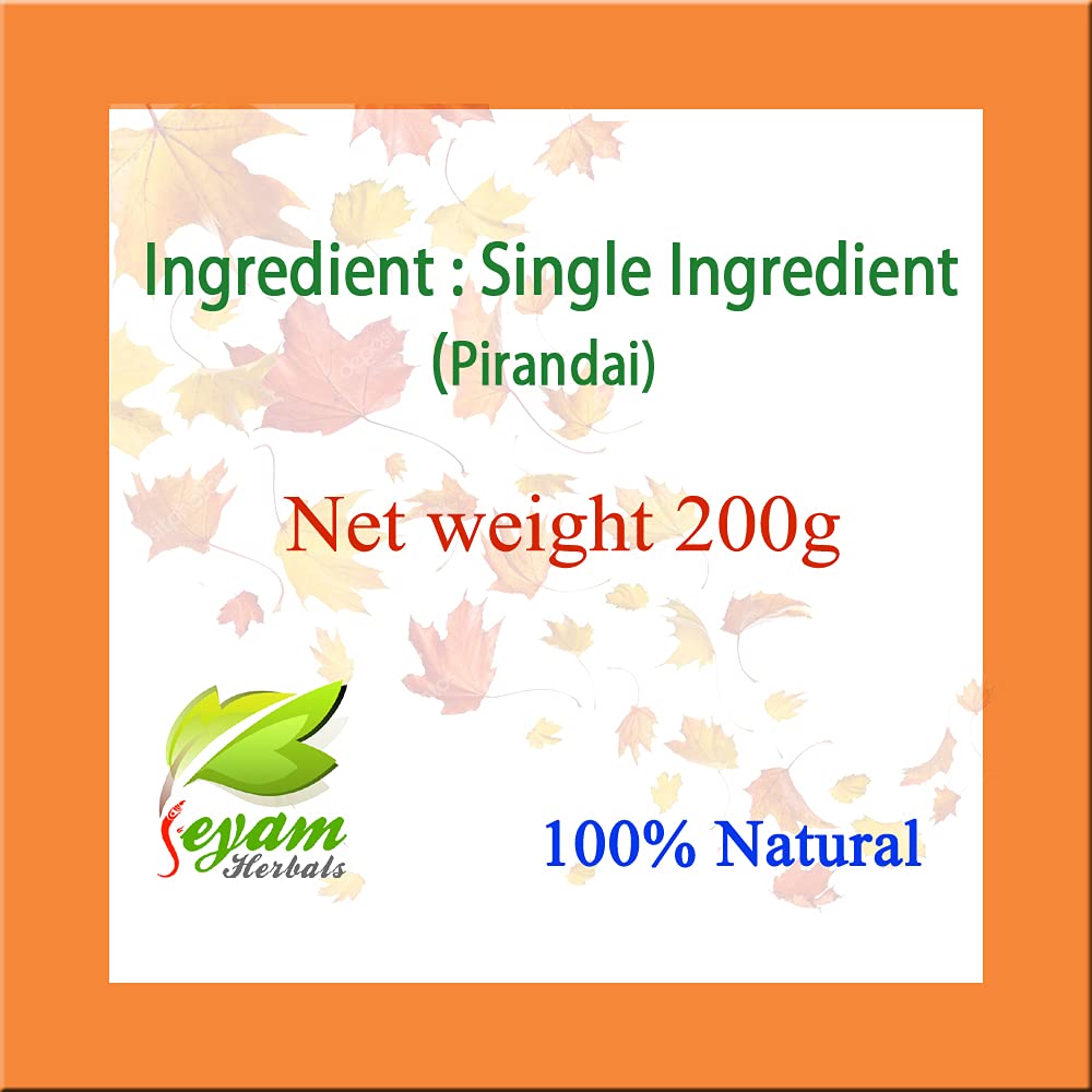 Pirandai powder derived from the Cissus quadrangularis plant is a traditional herbal remedy known for its extensive health benefits. Hadjod is widely used in Ayurveda and Siddha medicine for its potent anti-inflammatory and analgesic properties. Regular consumption of pirandai powder is believed to strengthen bones making it beneficial for individuals with osteoporosis or fractures. Hadjod (pirandai powder) helps in digestive health by alleviating indigestion flatulence and constipation. Pirandai powder is also reputed for its ability to enhance appetite and promote weight gain in undernourished individuals. Additionally nalleru plant (pirandai powder) supports cardiovascular health by reducing cholesterol levels and improving blood circulation. For women it is known to alleviate menstrual discomfort. Topically pirandai powder can be used to treat wounds burns and skin infections due to its antimicrobial properties. To use mix a teaspoon of pirandai powder with water or honey and consume daily or apply a paste externally as needed. Always consult with a healthcare professional before starting any new herbal regimen.