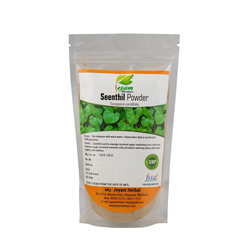 Seenthil Churnam is combination of whole plant extracts of Eclipta prostata Tinospora cordifolia and the dried powder form of Earthworm. It is being used for various therapeutic conditions in Siddha system of medicines. It has significant anti-inflammatory and analgesic activities. It is used in folk medicine as an anti-inflammatory agent. It protects liver and used in hepatotoxicity. It helps in abortion and miscarriage uterine hemorrhage piles insect bites stings swellings and other skin diseases.