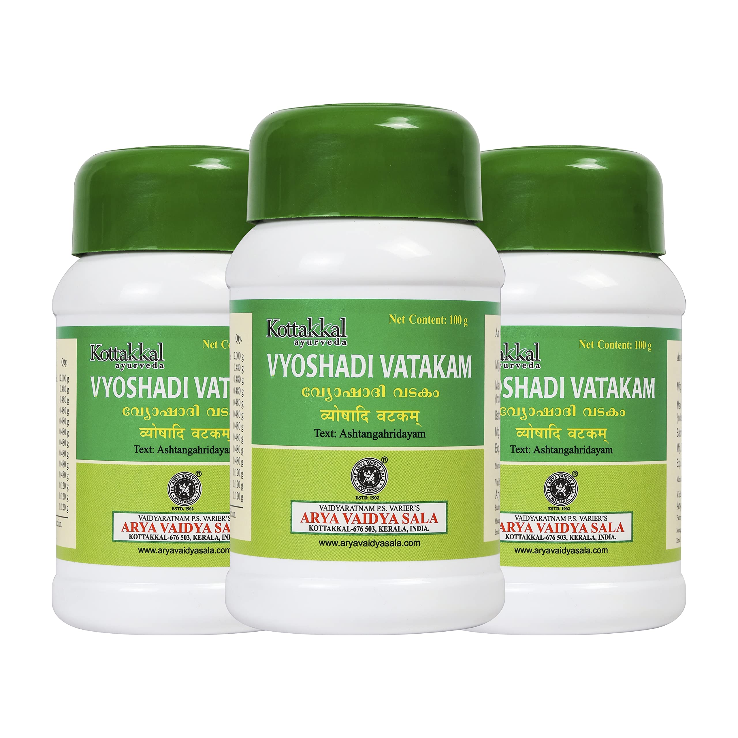 Kottakkal ayurveda Vyoshadi Vatakam - 100gm For the Improvement Throat Health - Pack of 3