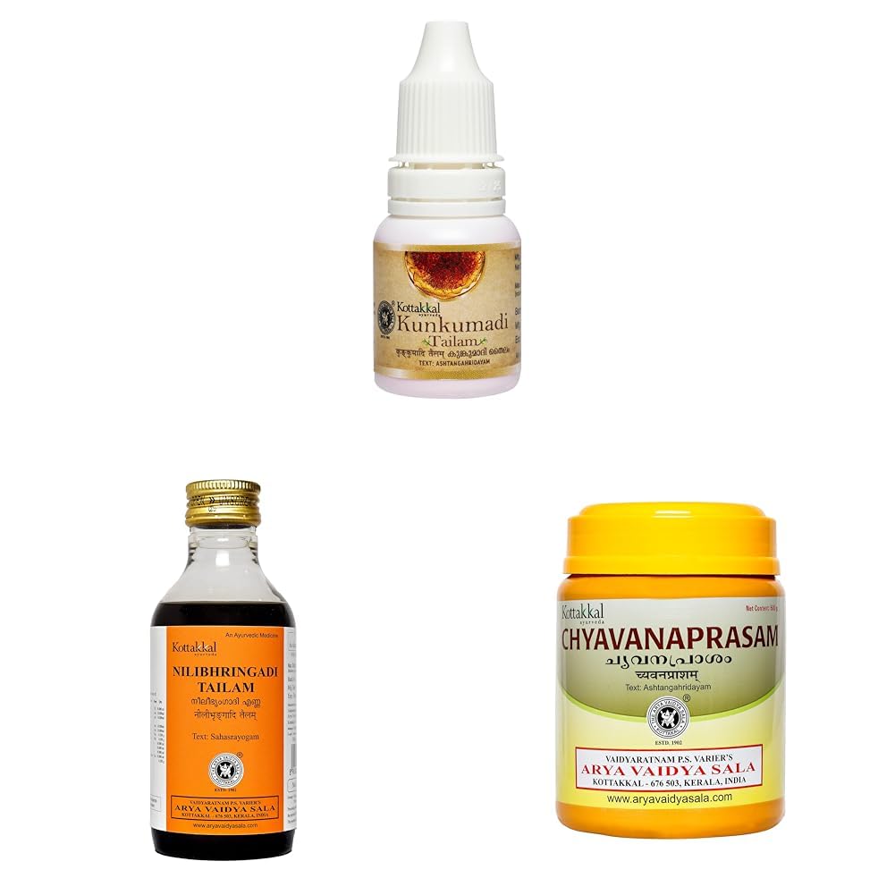 Kottakkal Kunkumadi Tailam [For Beautiful Skin] (10ml) Nilibhringadi Tailam [For Hair Growth] (200ml) Chyavanaprasam [For Immunity] (500g) | For Ayurvedic Health & Beauty