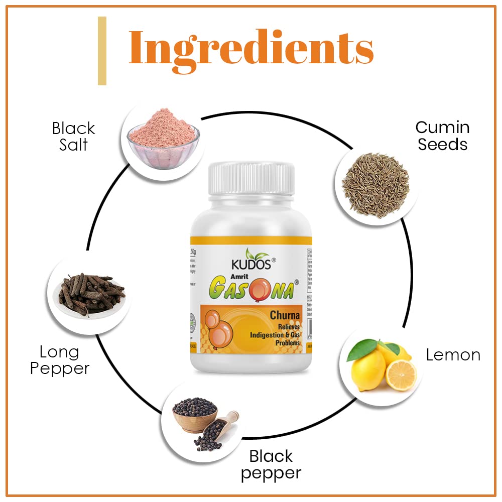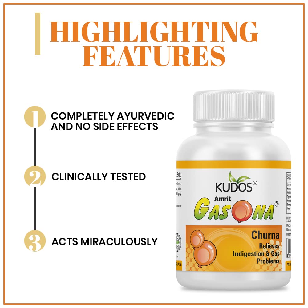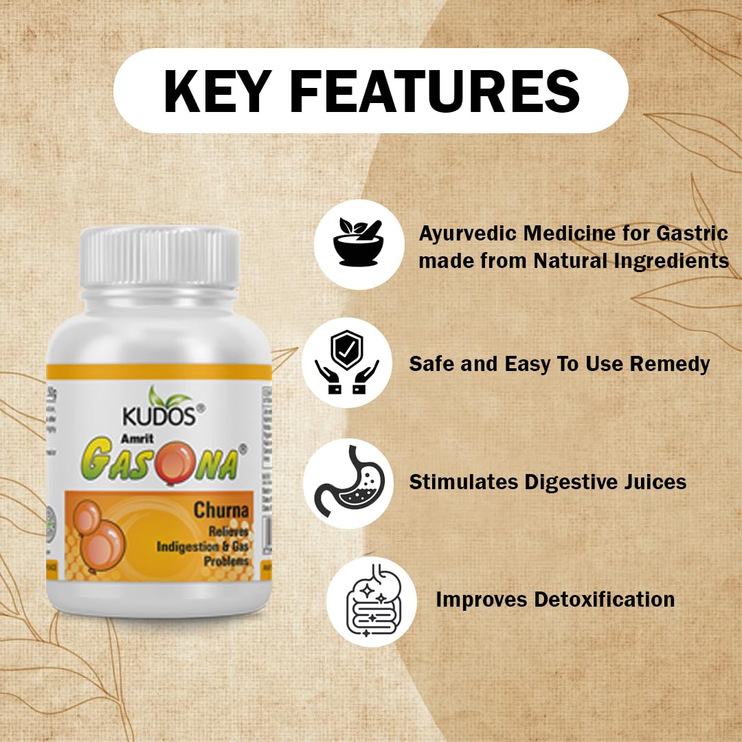 Kudos Amrit Gasona Churna 50g | Indigestion Relief | Ayurvedic Medicine for Gastric Problem
