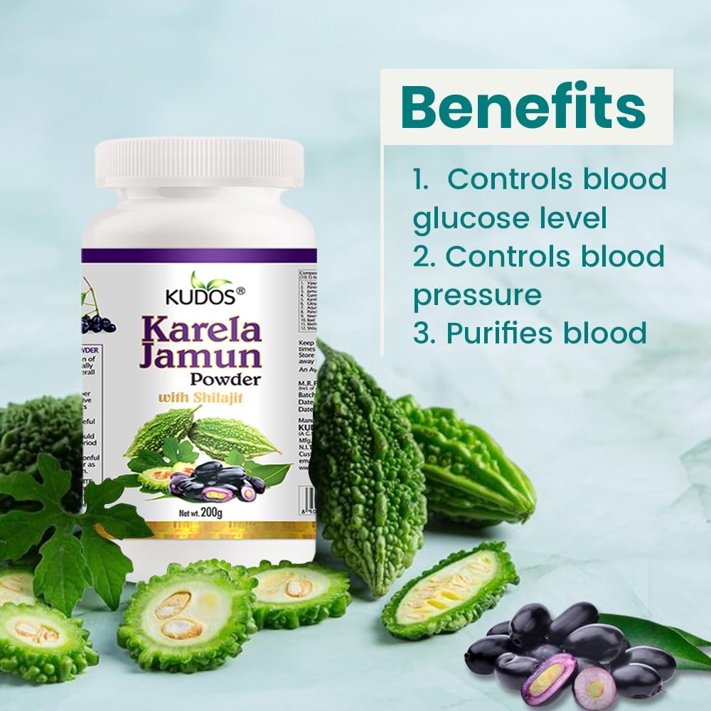Kudos Karela Jamun Powder For Controlling blood and glucose level | Ayurvedic Diabetes Powder | 200gm x Pack of 2