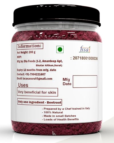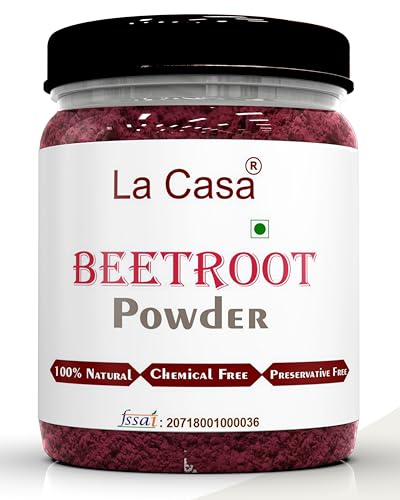 MINDFULLY CULTIVATED AND PROCURED: La Casa Beetroot powder is derived from lovingly grown beetroots. Our powder with its simple ingredient list is a natural wonder. Honoring our dedication to purity it's VEGAN GLUTEN-FREE. A NUTRITIONAL DELIGHT: La Casa Beetroot powder is a rich source of dietary nitrates which are often associated with supporting balanced blood pressure. Each spoonful offers a light calorie intake while being favorable for gut health. With just 1 TEASPOON seamlessly blend it into your beverages or culinary creations. VERSATILE IN THE KITCHEN: La Casa beetroot powder is a delightful addition to various recipes. Think about enhancing your hummus enriching your soups or jazzing up your yoghurt bowls ANTIOXIDANT-RICH: Beets are known for their antioxidants especially belatins that might help combat environmental stressors. They are also recognized for their content of folate manganese potassium iron and vitamin C. For those who love their workouts this beetroot powder might be a beneficial addition to pre-exercise routines. La Casa's Natural Beetroot Powder- Made from pure natural & authentic beetroot with no additives.
