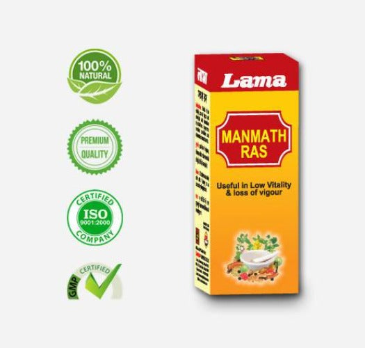 Lama Manmath Ras: 10 gm, 500 gmIngredients:Bang Bhasma, Bidari, Abhrak Bhasma,Jaiphal,Clove,Ajwain,Lauh BhasmaDosage:1-2 pills/ tablet twice a day with milk or as suggested by the expert.Legal Disclaimer: Statements regarding dietary supplements have not been evaluated by the FDA.Note: Product images are for illustrative purposes only. Images/packaging/ labels may vary from time to time due to changes made by the manufacturer's manufacturing batch and location. The product description