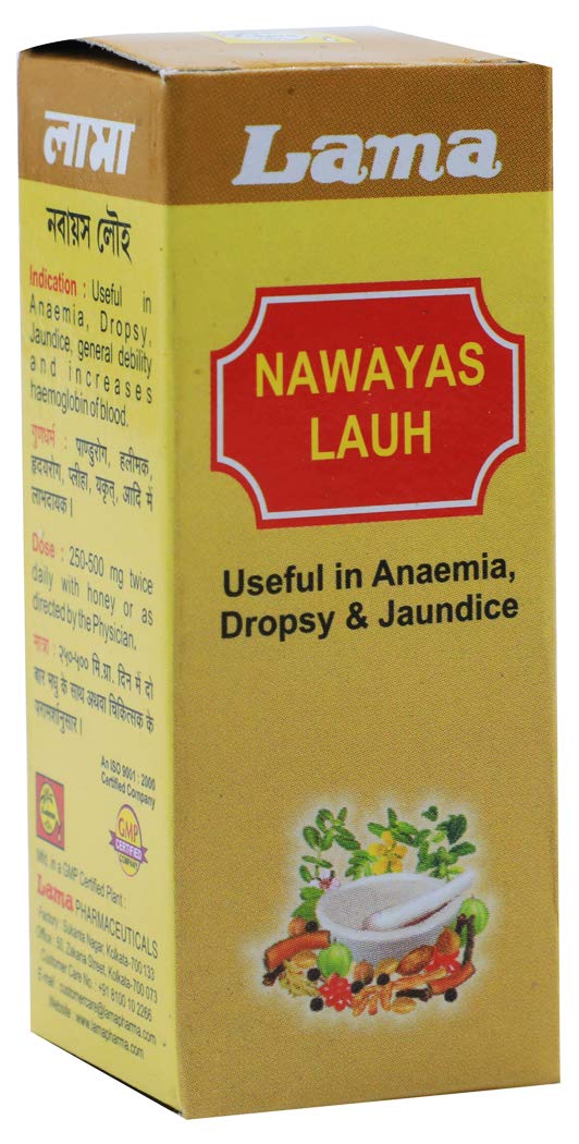 Lama Nawayas Lauh 10 gm (Pack of 2). Classical Ayurvedic product from Lama Pharmaceuticals. Ingredients are Trikatu Triphala Motha Vidang Lauh Bhasma etc.
