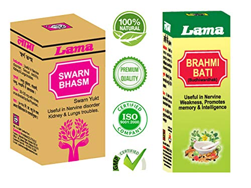 Lama Swarna Bhasma - 125 mg and Lama Brahmi Bati (Budhiwardhak ) -10 gm (Combo Pack) a highly effective combo patent Ayurvedic product from Lama Pharmaceuticals a Trsted name in Ayurveda since 1982.