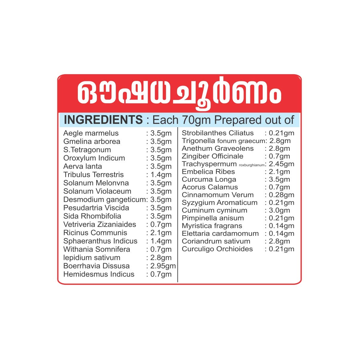 The bottle contains 70 grams of powder for 10 days at a rate of 10 grams each. Take 75 g of navarayari and boil it in one and a half liter of water. (If you are cooking in a cooker you do not need this much water.) Before the rice is half cooked take a packet (10 g) of the medicine powder from the bottle and add it to the porridge and mix well with the fenugreek and ashali. When cooked you can add a little salt and serve the porridge hot. For those who are unhappy with the medicine you can add coconut milk Palm Jaggery and red onion ghee mixed with any of these.
