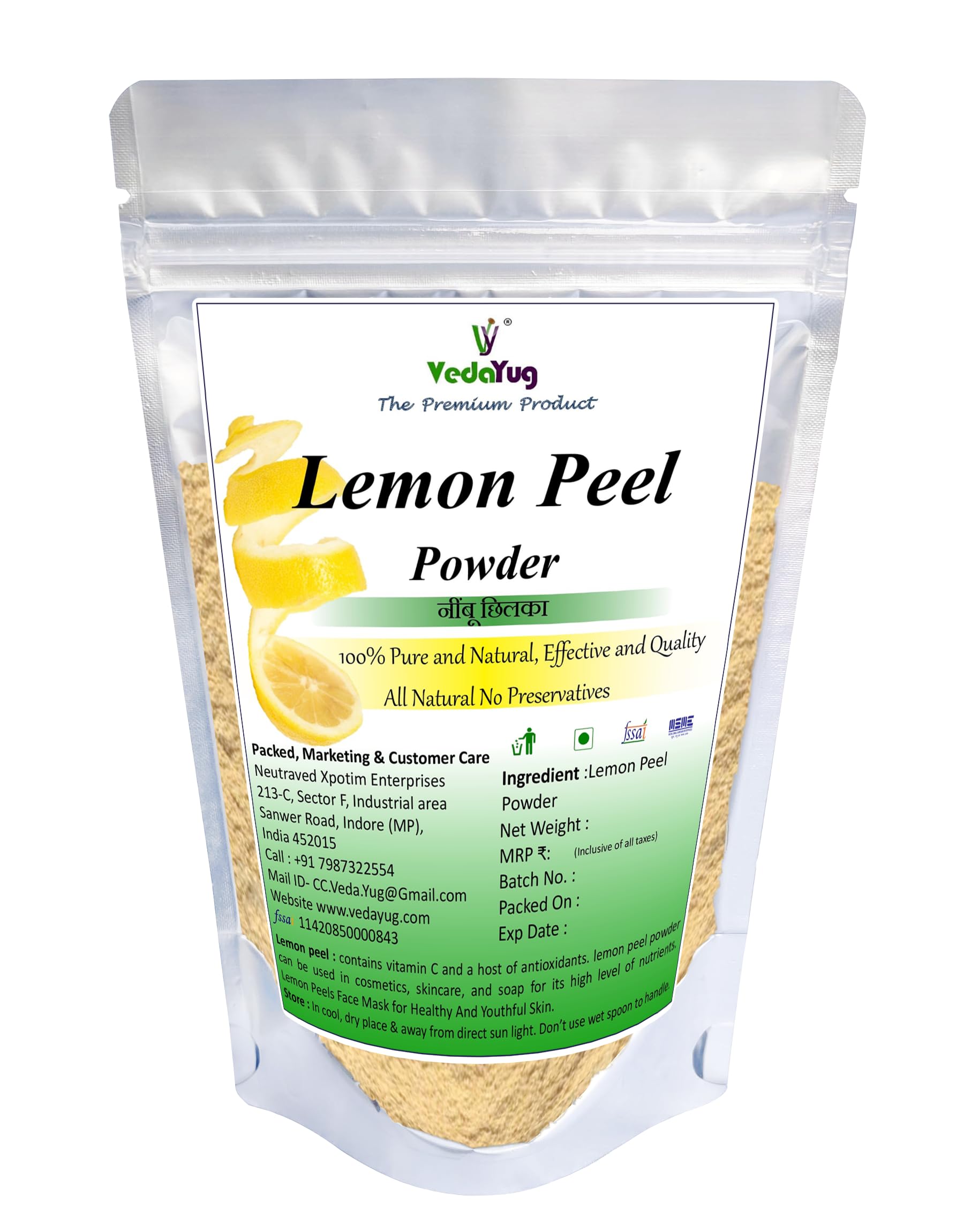 • 100% Safe and Pure dried lemon peel powder that has no side effects and is suitable on all skin kinds.