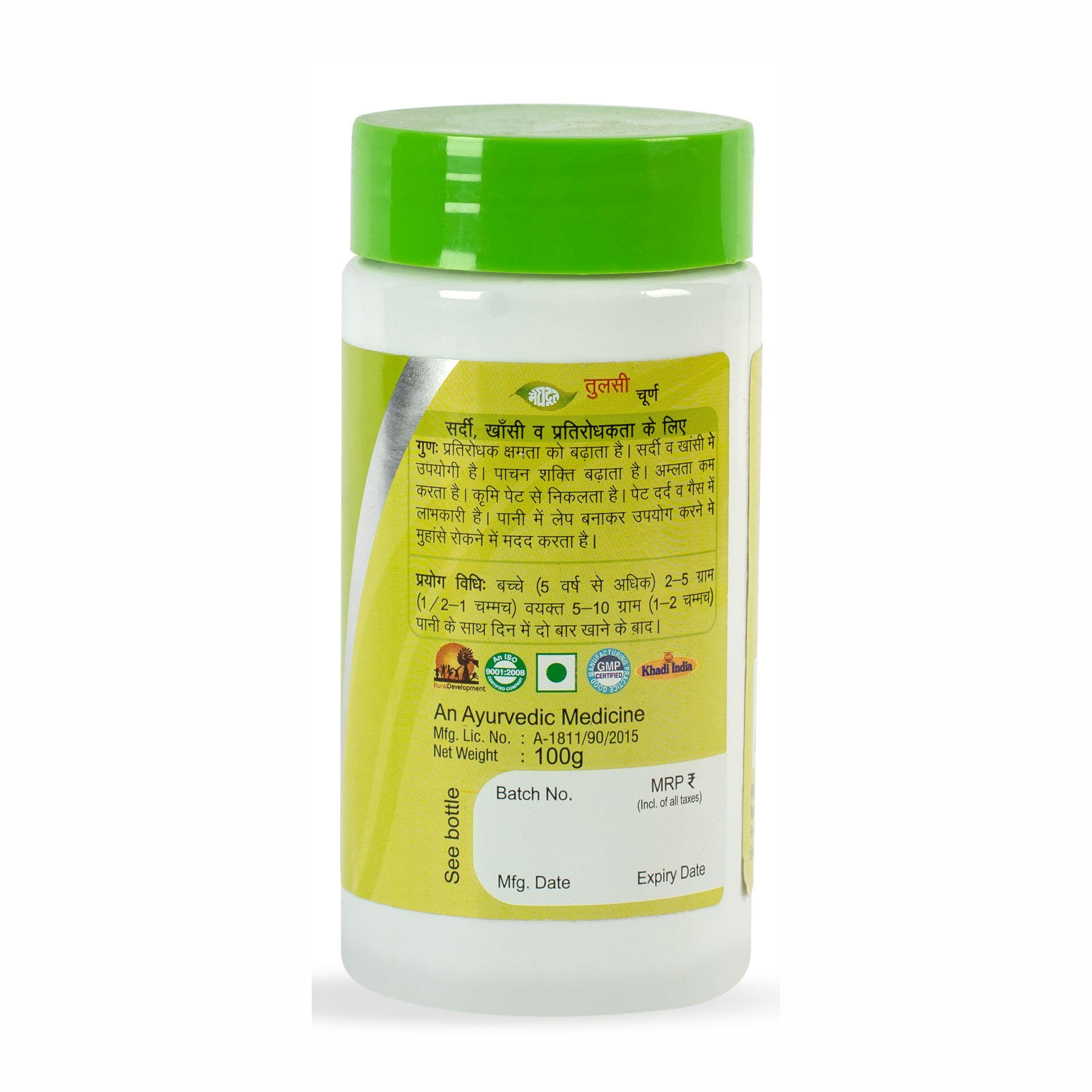 Tulsi powder for hair benefits by rejuvenating the hair follicles and strengthening the roots. Tulsi extracts clears and soothes scalp with its natural organic properties.This is a triple sifted microfine multipurpose powder which is suits all skin and hair types. This tulsi powder is completely free from all kinds of chemicals or preservatives and safe to use. Owing to its nutritional properties it is widely used as an important beauty ingredient. Tulsi Powder is best for getting relief from itchy scalp and skinIngredient: Ocimum sanctum (Leaf) 100% (Tulsi Patra) Therapeutic Use: Boost immunity relieves cough & cold aids in digestion carminative anthelmintic & antibacterial. It is also useful in cardiac debility flatulence & colic. Externally used to control acne & pimples when applied in the form of a paste in water. Dose: Children: (Above 5 years) 2-5gm (2- 1 table spoon) Adults: 5-10gm (1-2 tsp) with water twice a day.
