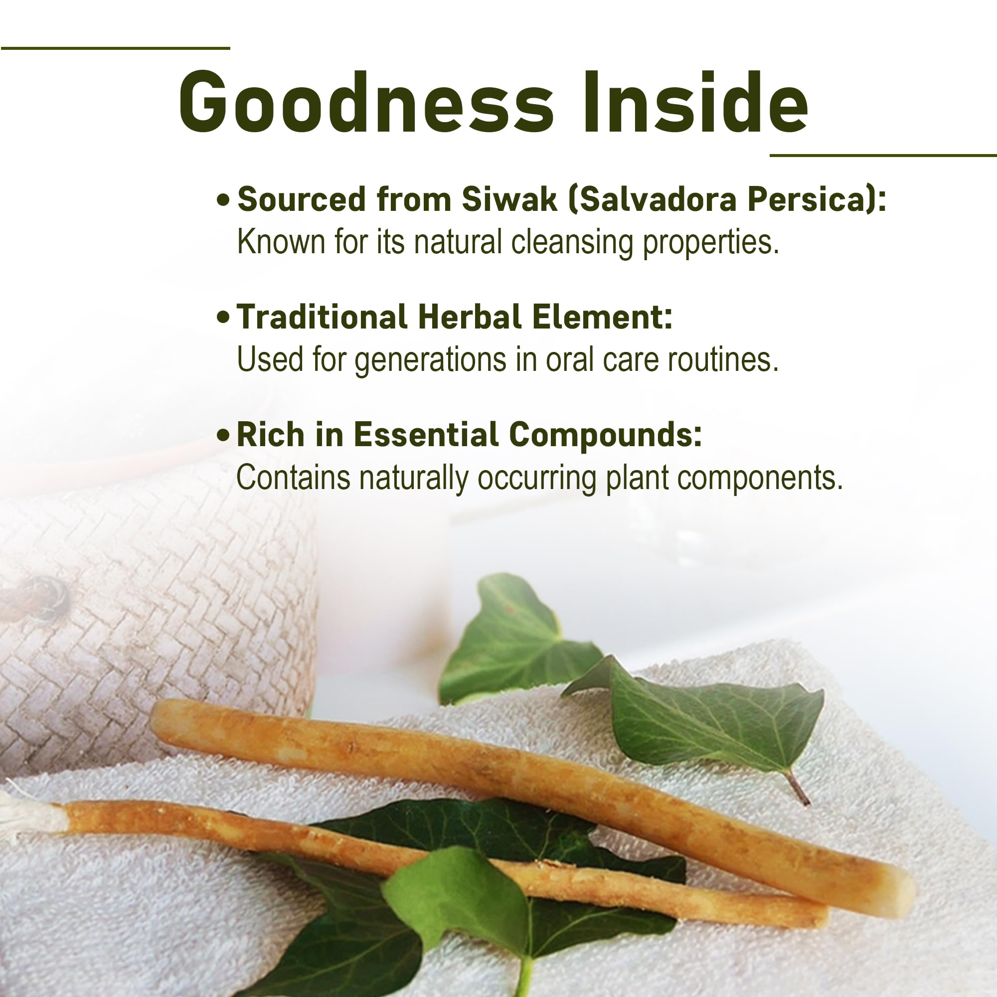 Pure Natural Formula - 100% authentic Miswak (Salvadora persica) powder with no fillers additives or artificial ingredients providing the complete benefits of this traditional dental care ingredient