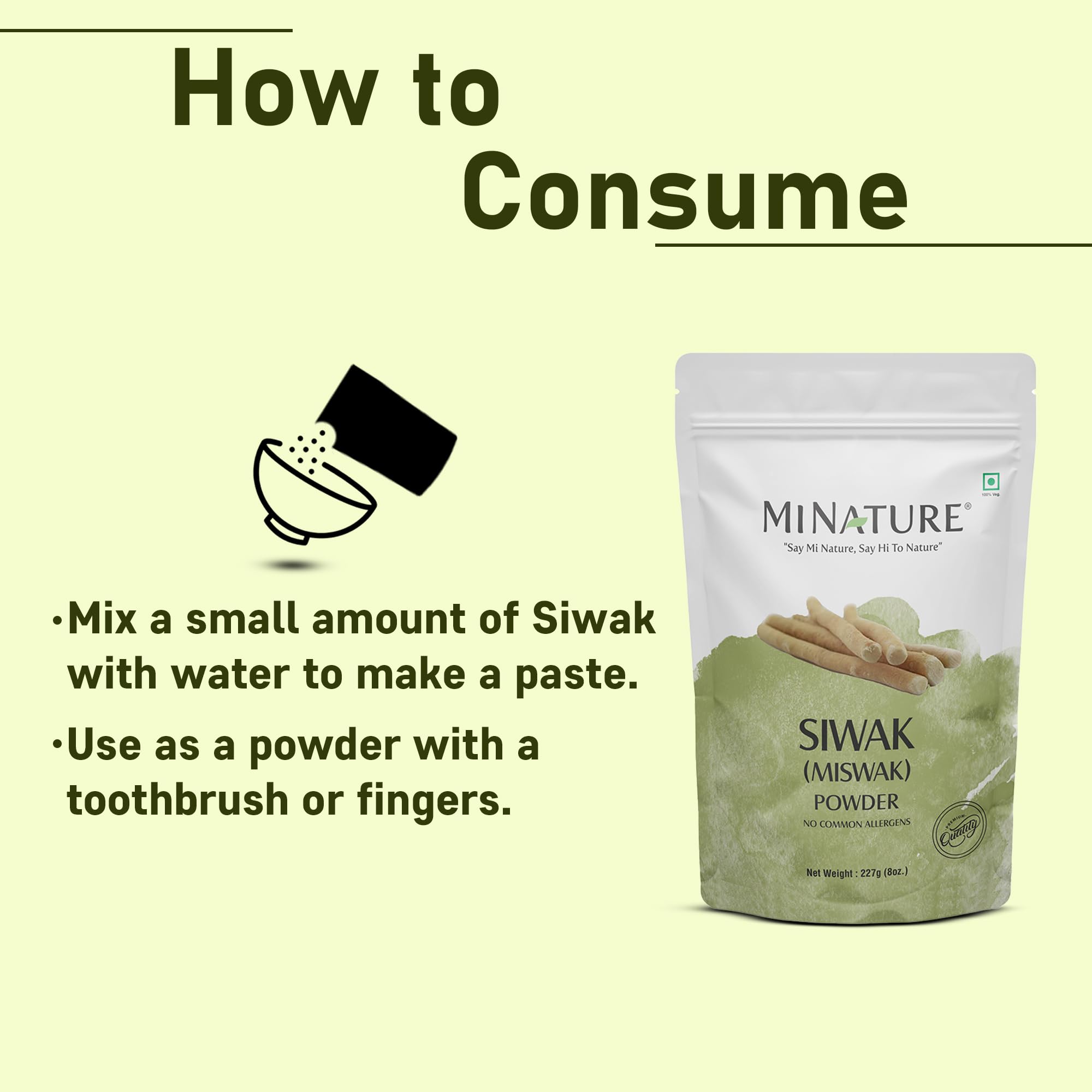 Miswak (Siwak) Powder by mi Nature | salvarado persica| 227g(8 oz) (0.5 lb) | 100% Only Miswak (siwak) Powder | Dental Care | Natural Toothpaste | Whitening Teeth | Oral Care