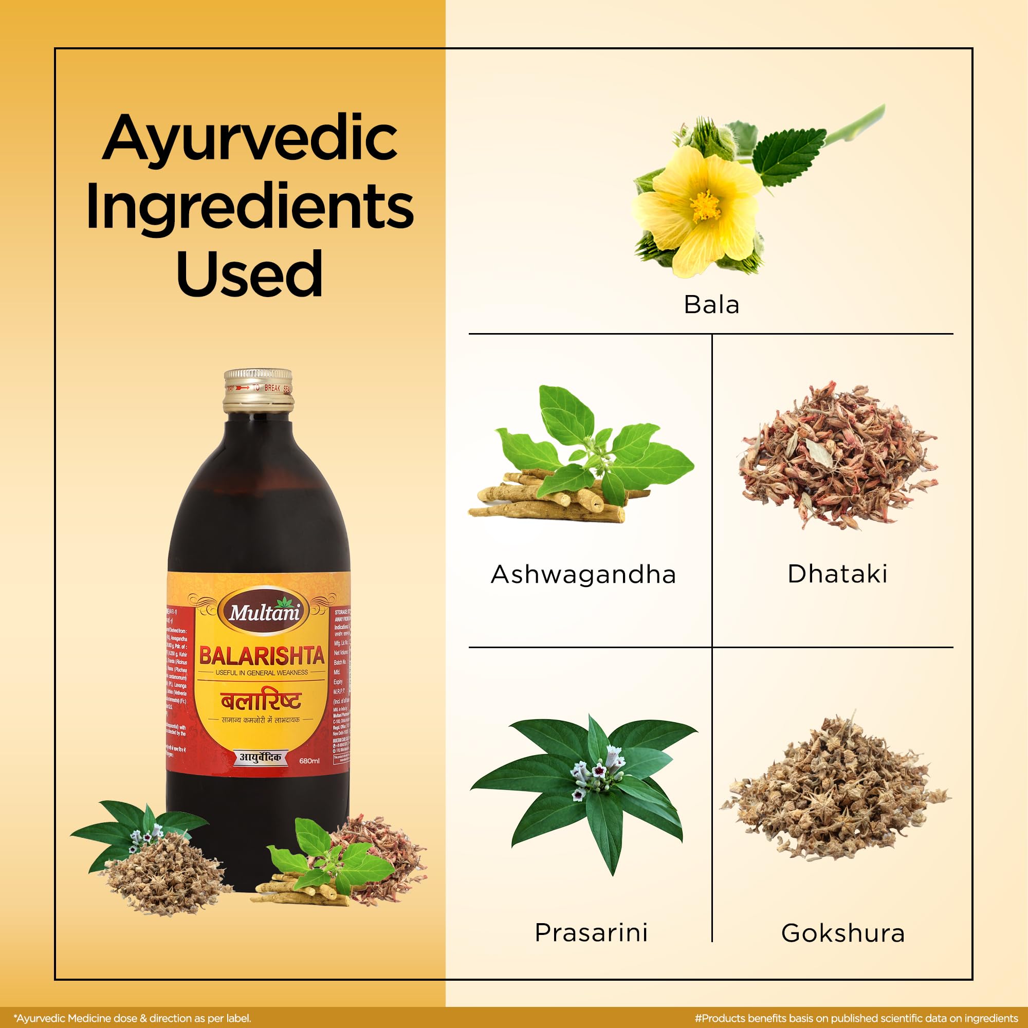 Multani Balarishta Multani Balarishta Or Balarishtam Is An Ayurveda Medicine Beneficial In Vata Imbalance. Balarishta Helps Improve Digestion Strength And Imparts Nourishment To The Body.