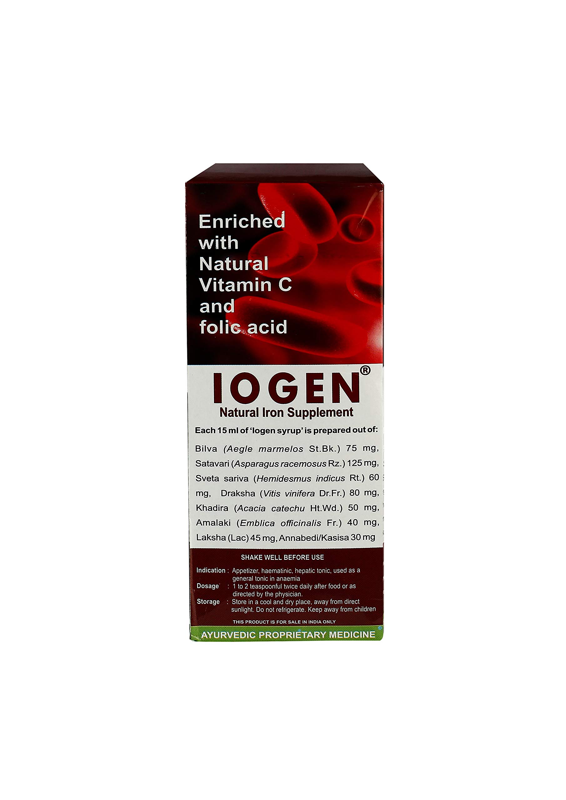 Iogen Syrup A complete haematinic iron supplement Iogen is a rich source of iron blended with natural vitamin C. Iogen Syrup improves anemic condition by increasing hemoglobin levels in blood and renormalizing appetite.