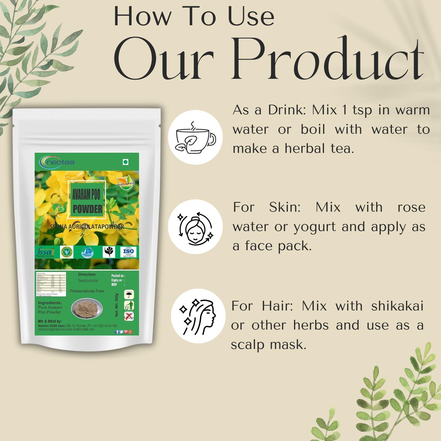 Neotea avarampoo powder | senna auriculata. Neotea a brand of health and household vitamins and dietary supplements. The products spectrum we offer to our customers includes Dry Fruit Herbal Powder Organic Cocoa Powder and many more.