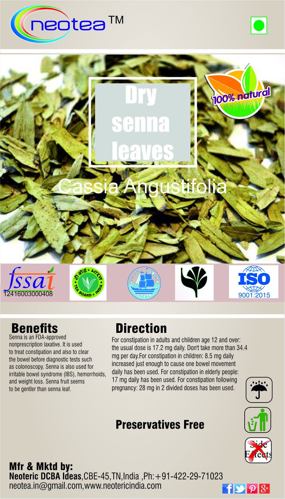 It is used to treat constipation and also to clear the bowel before diagnostic tests such as colonoscopy. Senna is also used for irritable bowel syndrome (ibs) anal or rectal surgery tears in the lining of the anus (anal fissures) hemorrhoids and weight loss. Senna fruit seems to be gentler than senna leaf.