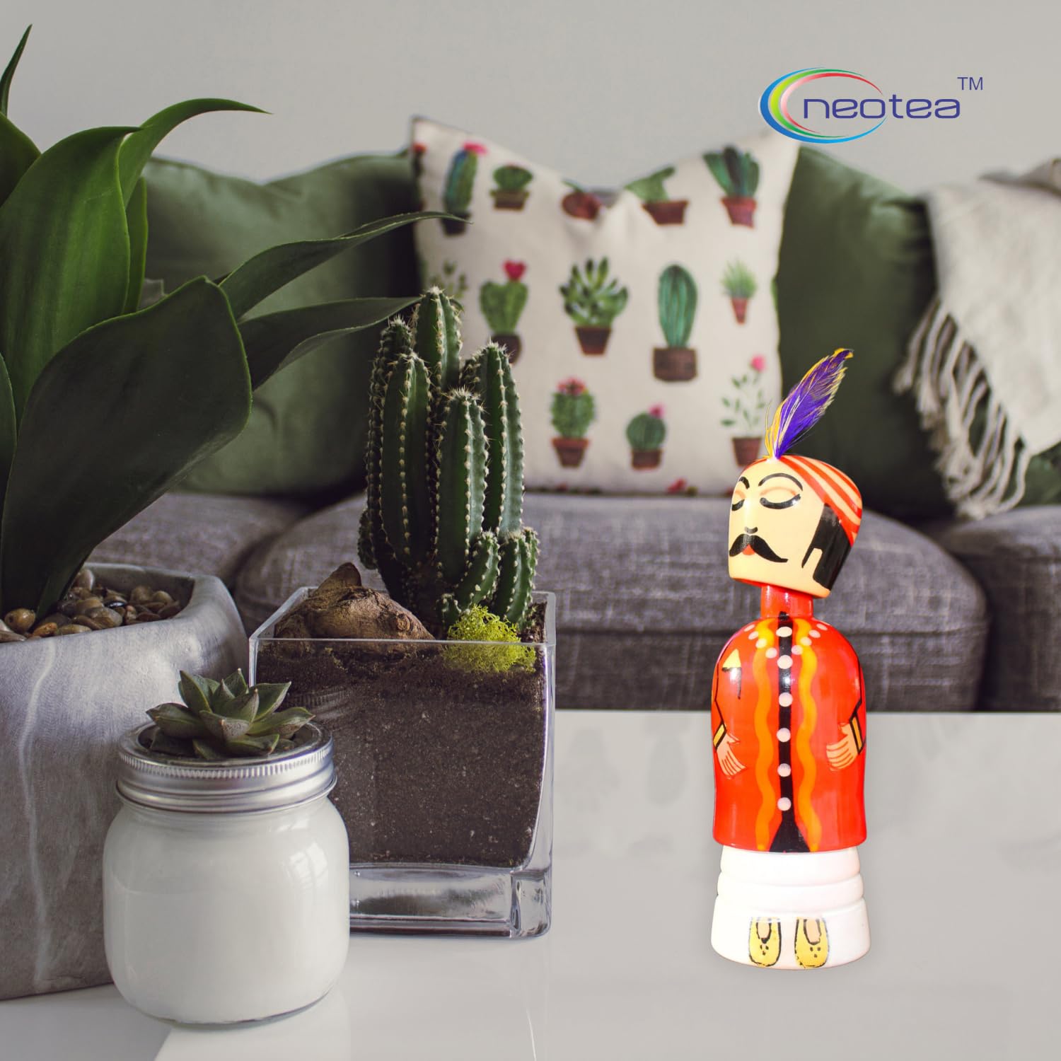 Neotea Wooden Welcome Man-Pack Of 1. Home Decor Welcome man The production of wooden toys particularly when hand-crafted and when all materials are sustainably sourced and certified offers a stark comparison to the creation of many mass-produced plastic toys which can contain dubious chemicals and often offer little prospect of renewability. Handcrafted Colourful Wooden toy handcrafted by our artisans from Channapatna with a safe medicinal wood - Wrightia tinctoria. The colours are safe and non-toxic. Each piece is made of locally available wood. Please note that the colours may vary a little bit from the one in the pics.
