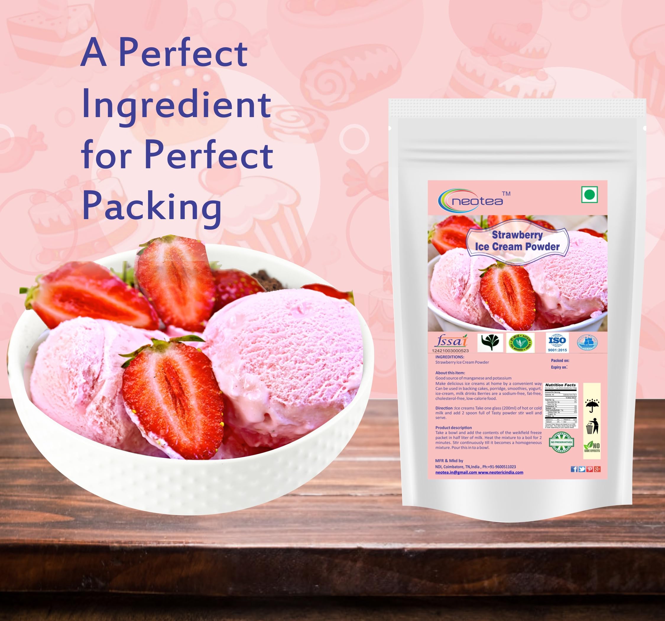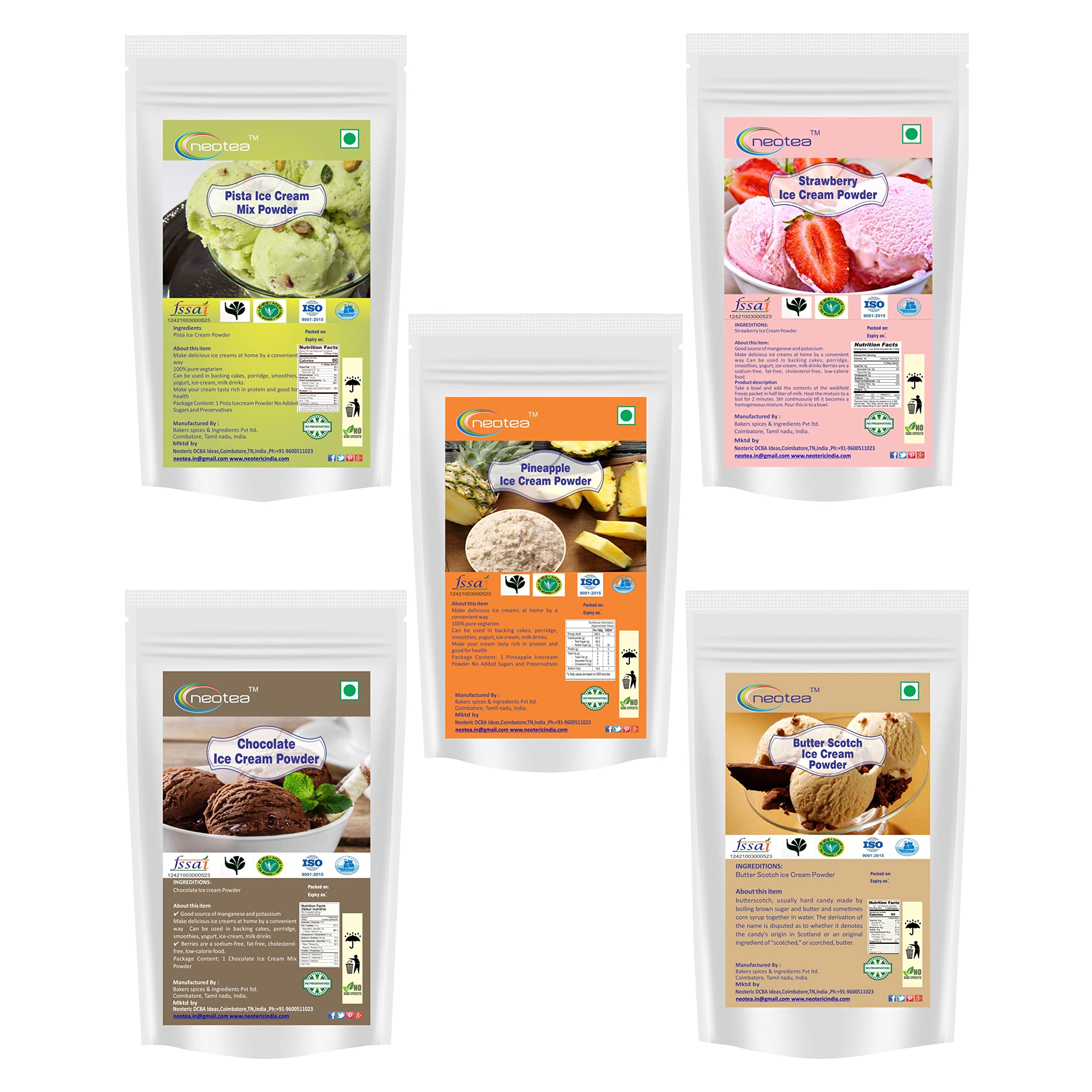 Neotea Ice Cream Powder (Pista Strawberry Pineapple Chocolate Butter Scotch (100X5) 500gm Pack of 1
