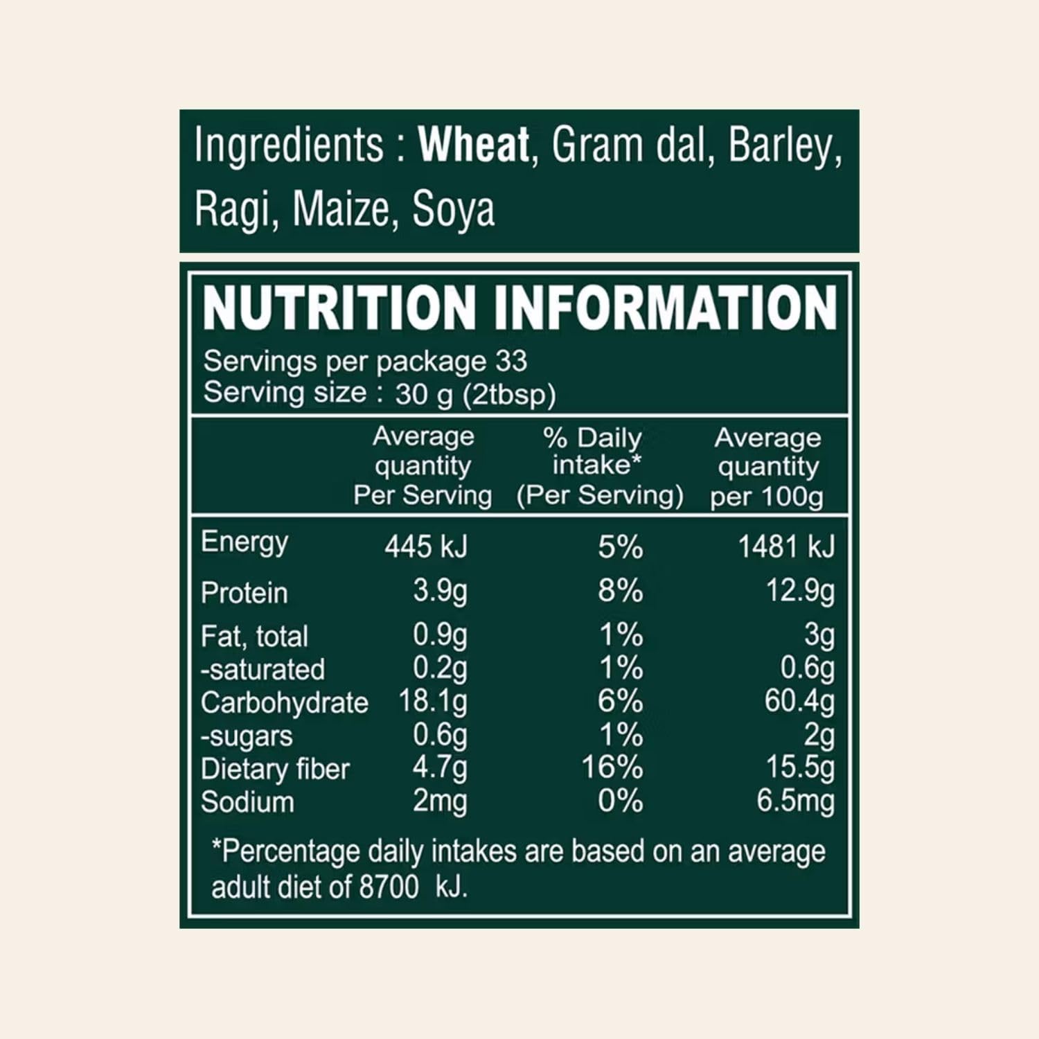 Power of Multiple Grains Made with a nutritious blend of whole grains like wheat ragi jowar corn and rice for a balanced wholesome meal.