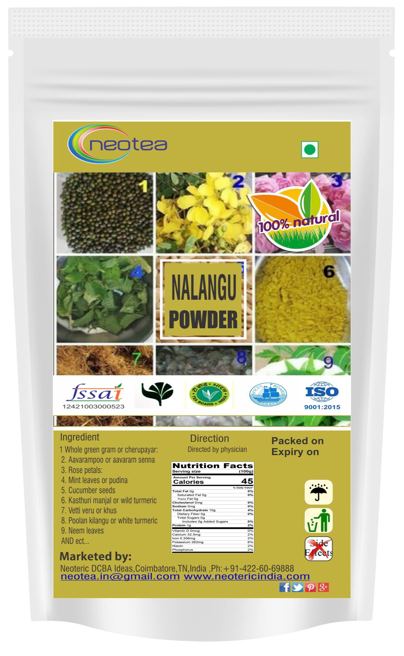 It is an ayurvedic formulation made with natural ingredients like indian sarsaparilla white turmeric champak flagroot and others. Neotea a brand of health and household vitamins and dietary supplements. The products spectrum we offer to our customers includes Dry Fruit Herbal Powder Organic Cocoa Powder and many more.Aromatic natural herbal bath powder used to cleanse the skin and make it softer Gives excellent fragrance and acts as a natural deodorant keeping you fresh and lively whole day An excellent herbal/traditional/natural replacement for bathing soap