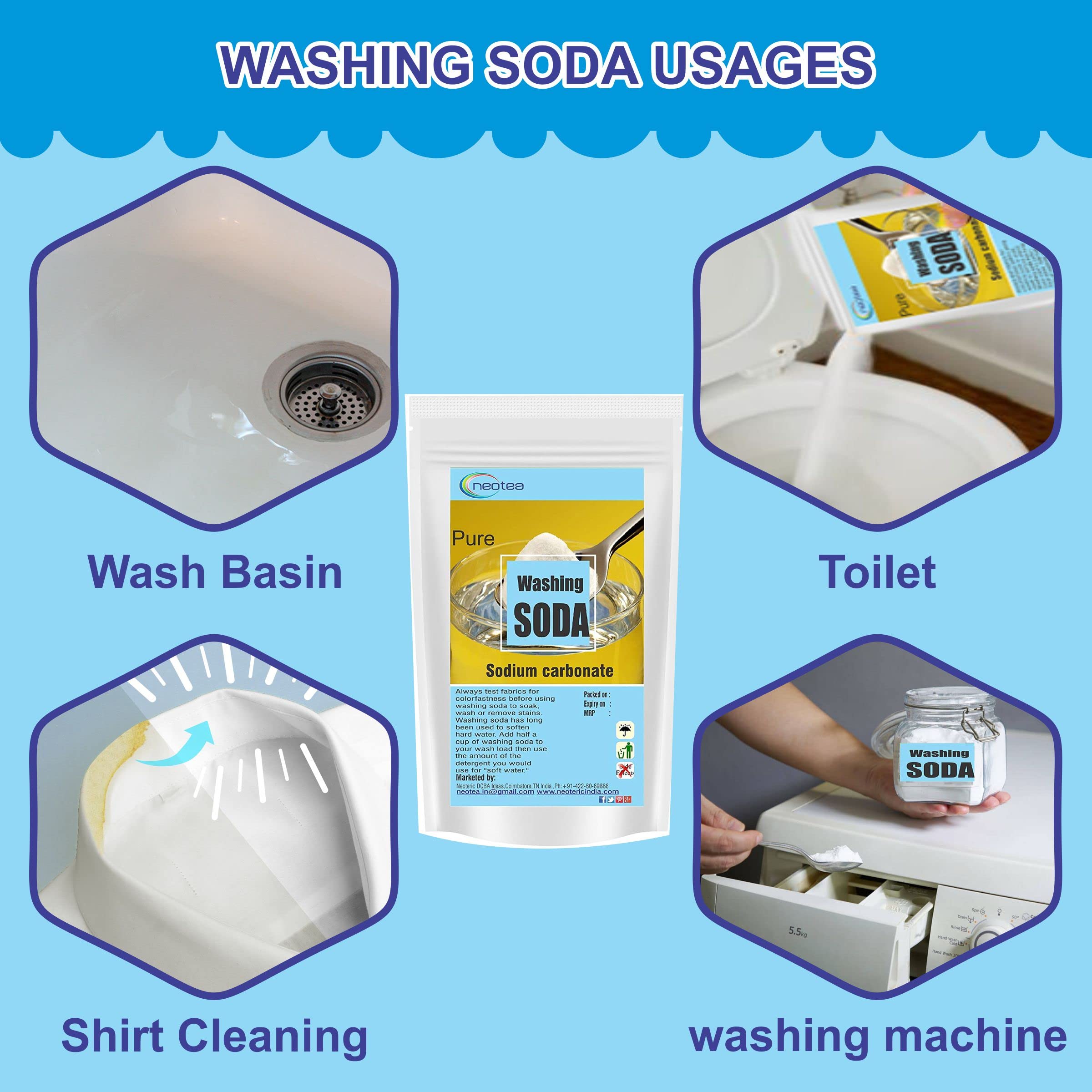 100% Pure Washing Soda Neotea Washing Soda Powder is made from high-quality sodium carbonate ideal for a variety of home and laundry uses.