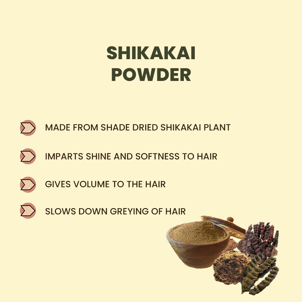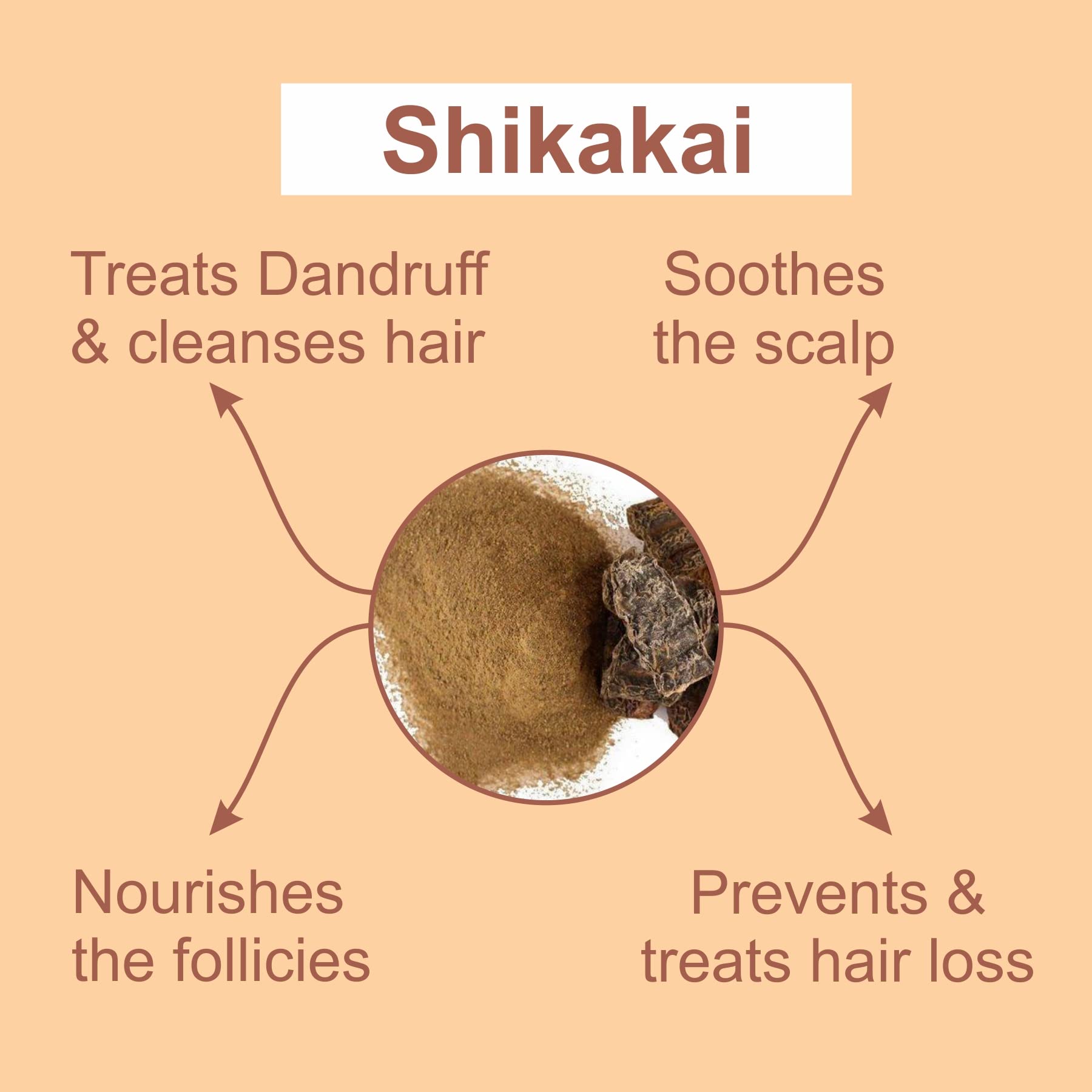 Shikakai is a fruit that acts as a natural mild conditioner with a low ph. It's fantastic at balancing hair from dry to normal scalps. Known for being mild it rejuvenates hair follicles and moisturises the scalp which is excellent for dandruff sufferers.How to use it? For Shiny & Soft Hair: Boil 2-3 tbsp of shikakai powder in 2 cups of water to make a semi-liquid paste. Add some honey. Apply this paste & rinse it off. For Thicker Hair: Make a paste of shikakai powder with yoghurt & apply to your hair & scalp. Keep for 20-30 mins & rinse it off.Grey hair control: Apply a hair pack of shikakai amla powder & soap on your.On Skin: Mix 1-2 tbsp shikakai powder with creamalmond powderhoney & turmeric. Scrub your face using this mixture. Shikakai imparts shine and body to hair Has a balancing effect on irritated scalp and dandruff. Shikakai cases contain normally happening saponins that help clear off the overabundance of sebum and dirt from the scalp. It advances hair development