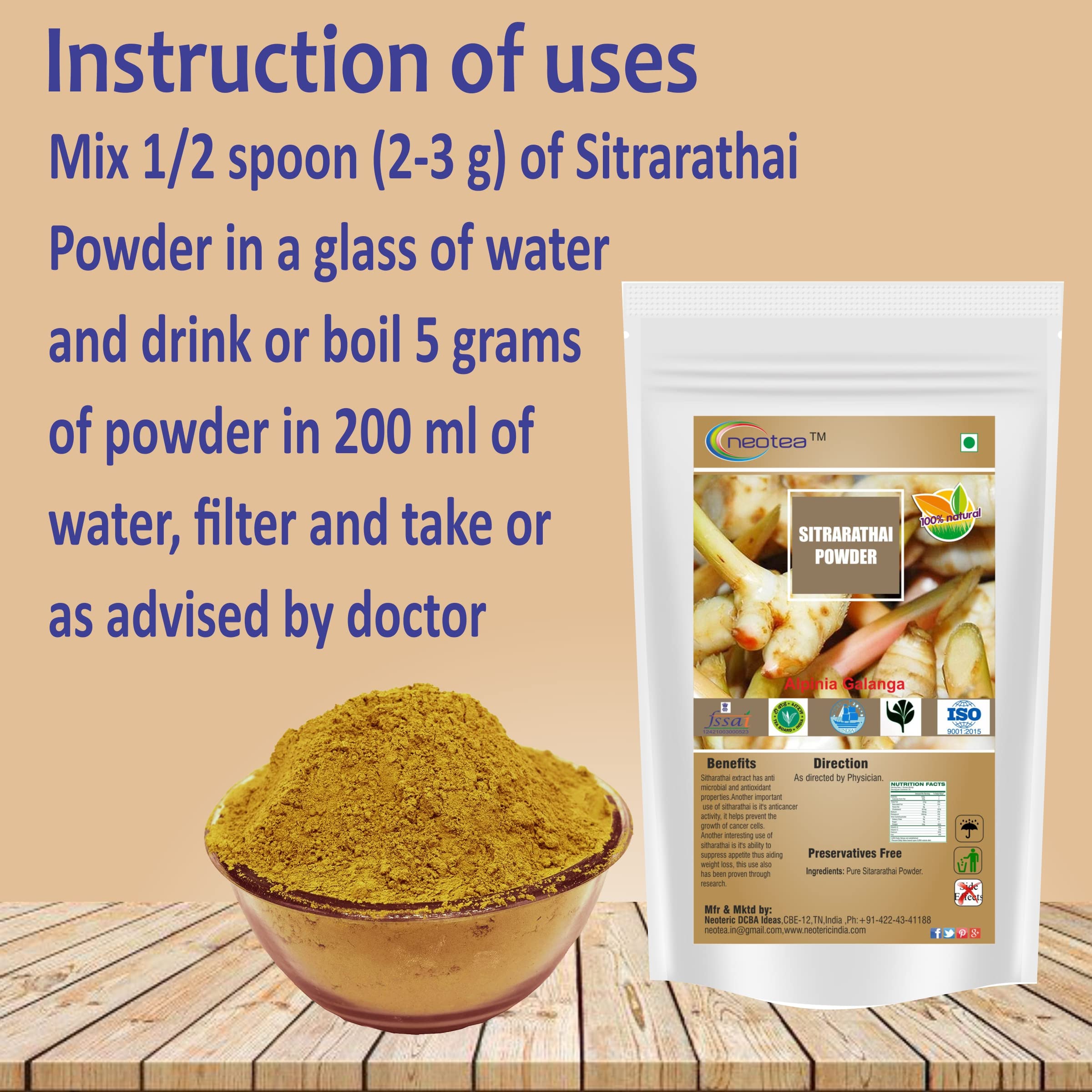 Neotea Sitarathai Powder is a premium 100% natural and organic herbal supplement made from the powerful Sitarathai herb (also known as Gymnema Sylvestre). Known for its traditional use in Ayurvedic medicine this high-quality powder offers a variety of health benefits including supporting digestive health promoting detoxification boosting immunity and enhancing overall wellness. The natural compounds in Sitarathai help improve digestion by promoting better gut health easing bloating and supporting healthy metabolism. It also acts as a gentle detoxifier helping to cleanse the body by flushing out toxins supporting liver and kidney health and improving overall energy levels. Rich in antioxidants Sitarathai powder boosts the immune system helping the body fight off infections and maintain optimal health. Regular use can promote vitality and enhance overall well-being. Neotea Sitarathai Powder is free from additives preservatives and chemicals ensuring that you receive a pure and potent herbal supplement. It is easy to incorporate into your daily routine by adding it to warm water smoothies or herbal teas.