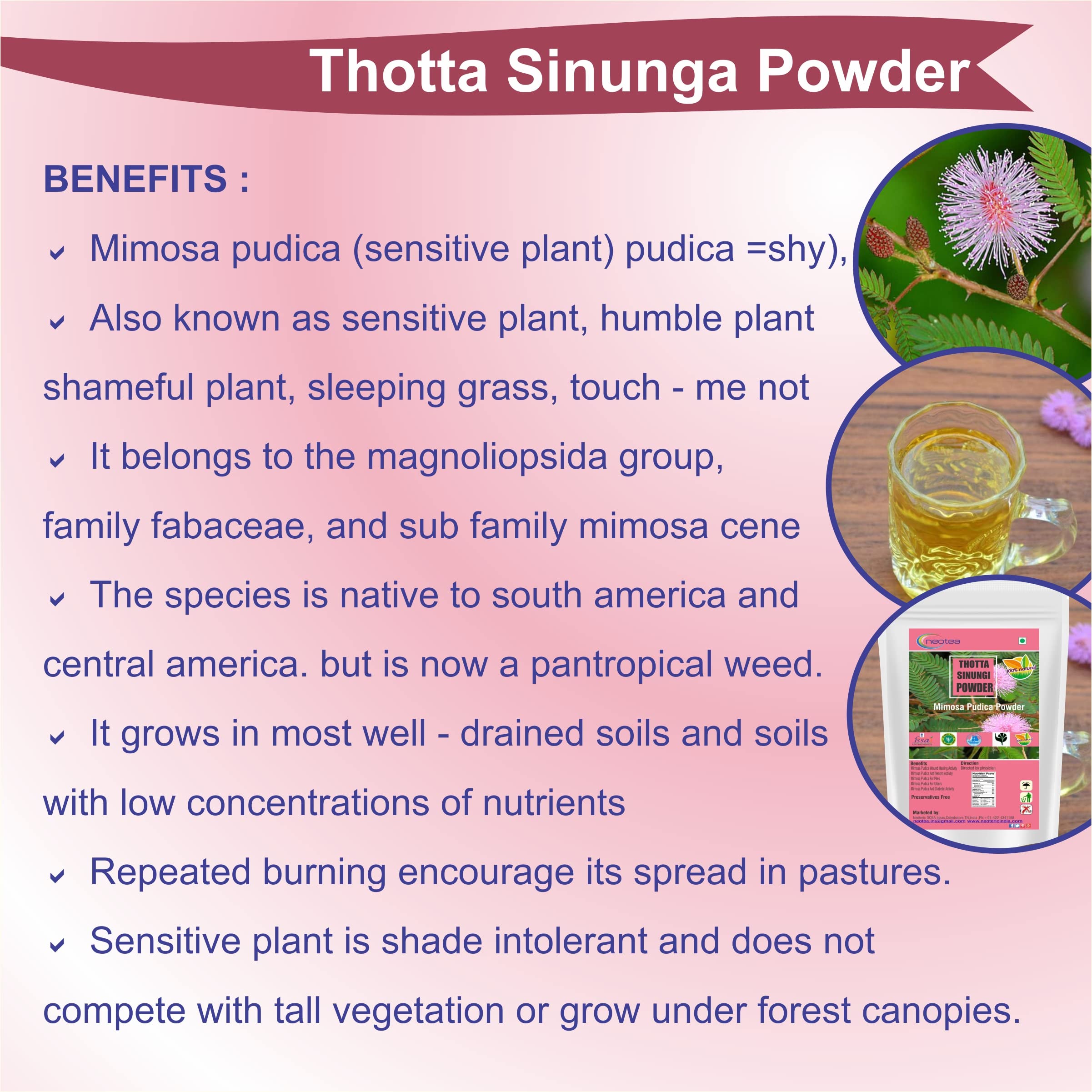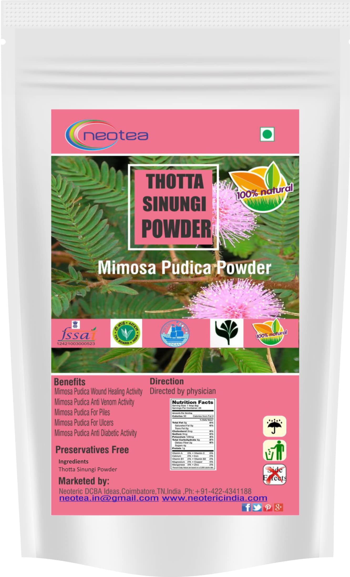 Neotea Thotta Sinungi Powder Thotta Sinungi Mimosa Pudica Powder Chui Mui Lajvanti Shy Plant Touch Me Not Mudatha Damara Lajalu Muttidare Muni Thottavadi Ajalikalika 300 GM