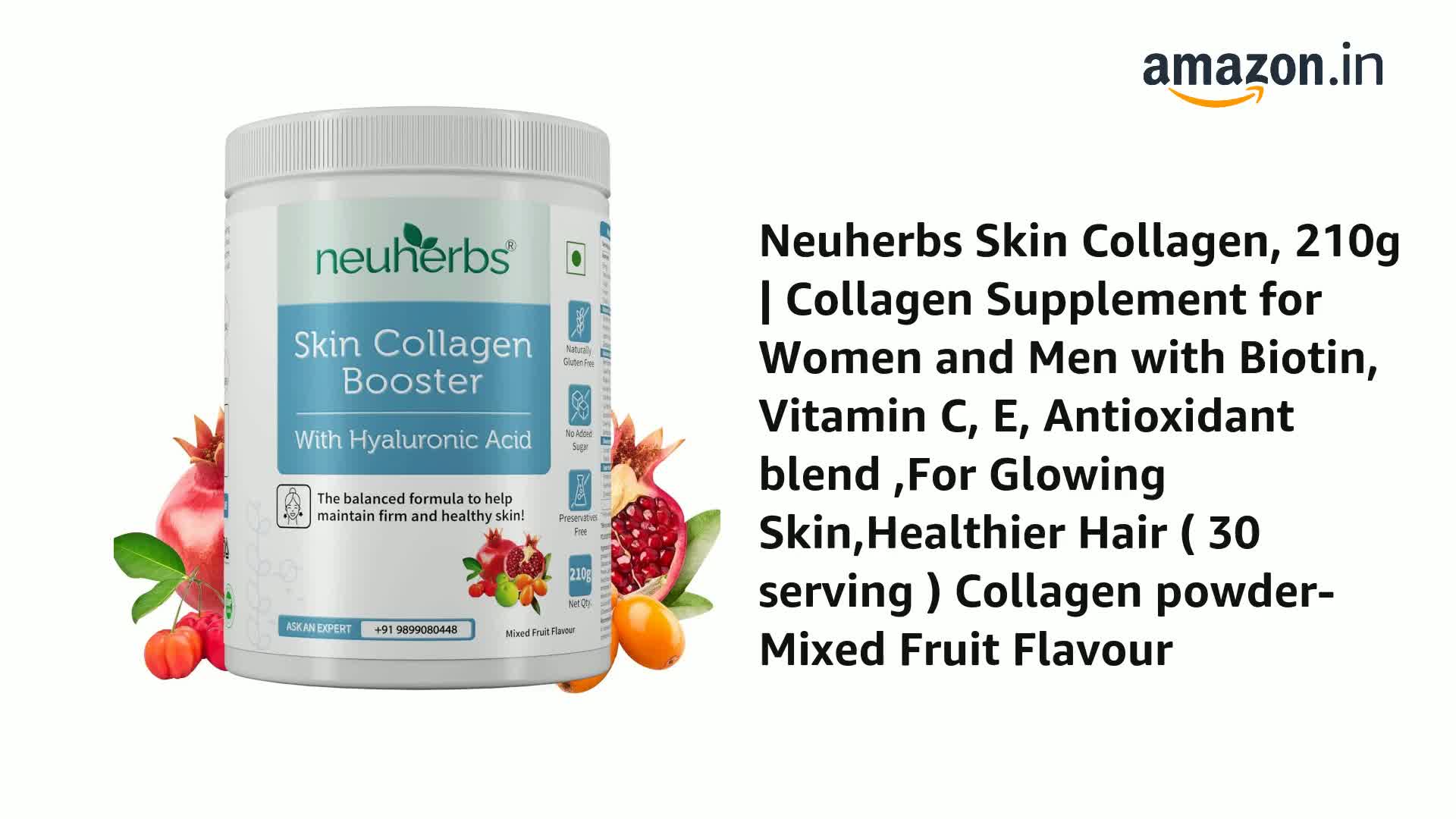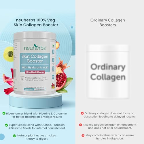 • Neuherbs Skin Collagen Booster offers goodness of collagen boosting ingredients like vitamin C Spinach & hyaluronic acid that helps promote natural collagen production & skin firmness.