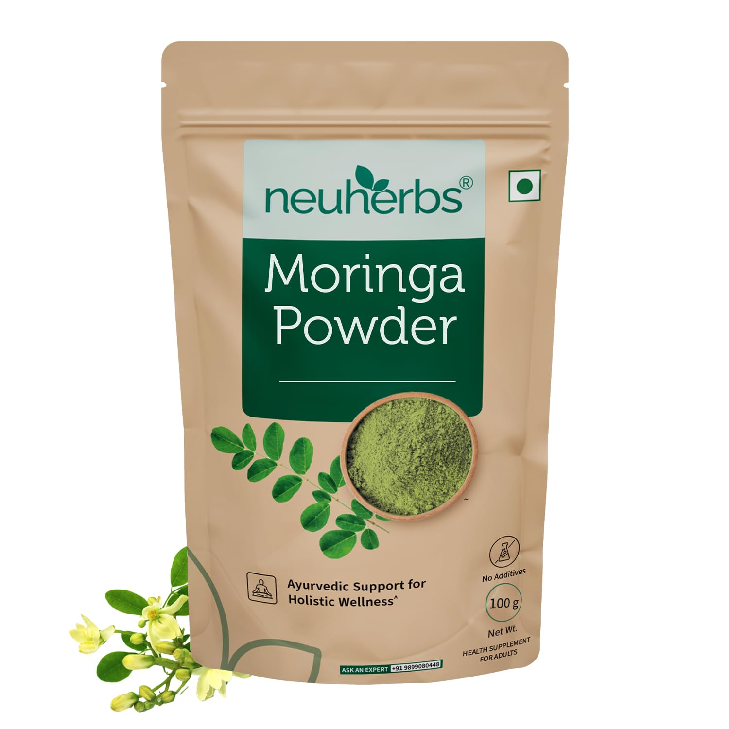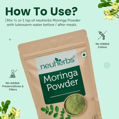 neuherbs brings to you the highly nutritious superfood Moringa Powder. Made from pure natural & organic moringa leaf to help you with growth & holistic wellness. Moringa powder has been in use for various health advantages especially among the health-conscious people as studies have shown that moringa powder is rich in Protein vitamins A C Calcium Iron & Fiber like essential nutrients. Moringa powder benefits by enhancing immunity improving digestion supporting weight loss & also eyesight. neuherbs organic moringa powder is made without any added preservatives colours or fragrances to provide original moringa powder & its related benefits.