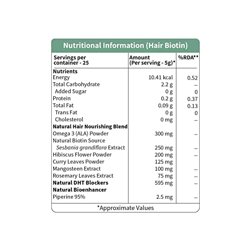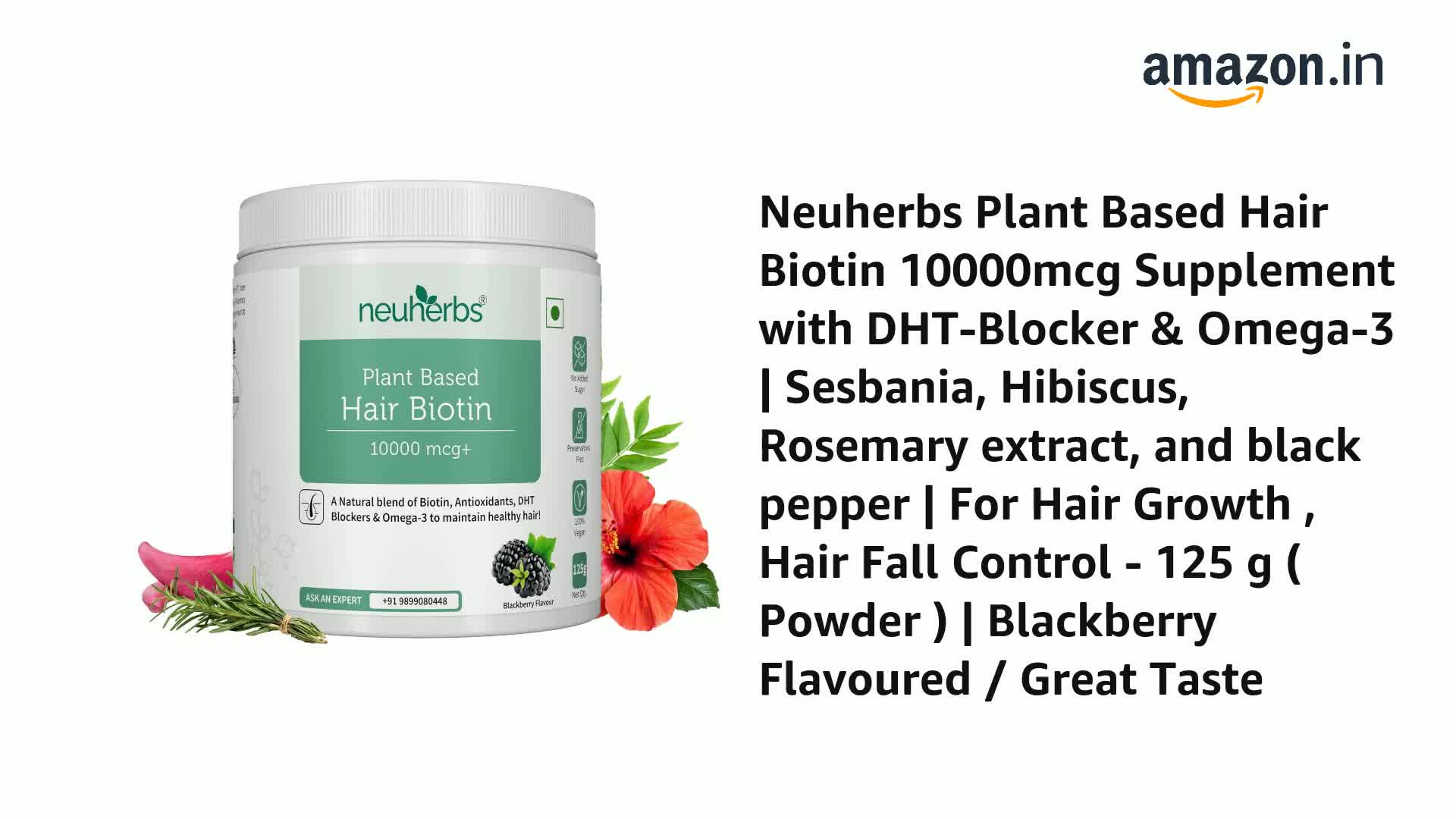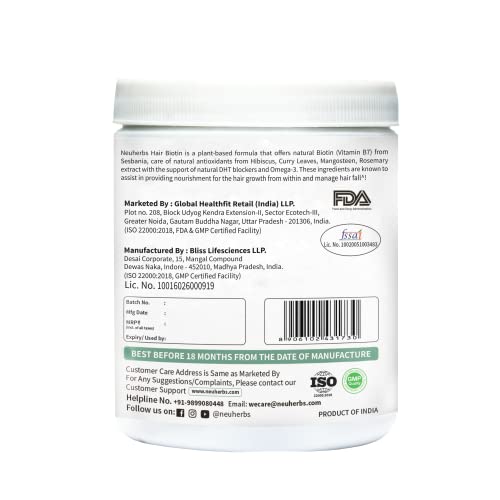Neuherbs has brought to you a 3-in-1 plant based Hair Biotin formula with the ingredients that are naturally extracted from the goodness of herbs & plants to make your hair healthy and beautiful from the inside out. With the support of omega-3 (ALA) from the natural source i.e Flaxseeds to make hair lustrousstronger & healthy. Not limited to this it also contains natural or herbal DHT blockersPumpkin Seed Extract Green Tea Extract Pygeum Extract Stinging Nettle ExtractLycopene along with the Silica from Bamboo Shoot Extract which have been found useful to fight hair loss restore hair health and reduce the risk of baldness by blocking an enzyme. To make these nutrients fully absorbed this amazing formula gives you black pepper extract for enhanced absorption & better results. This formula is based on the approach to help you manage your hair health by delivering natural clean nutrition hence it has been made Naturally Gluten Free Soy Free Non - GMO Preservatives Free with No Added Sugar & Artificial Flavor & Color