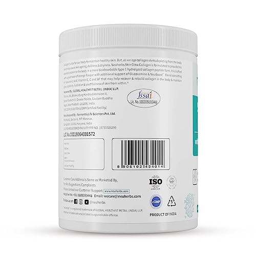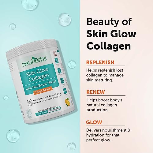 Neuherbs Collagen Supplement - 200 Gram, Orange Flavour |Skin Glow Marine Collagen Powder for Women & Men | Collagen with Hyaluronic Acid, Vitamin E & C, Biotin | Supports Glowing & healthy skin.
