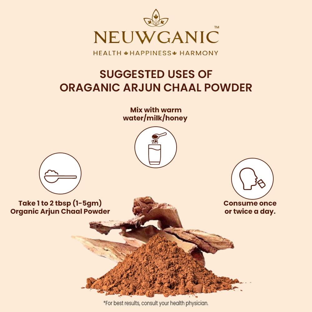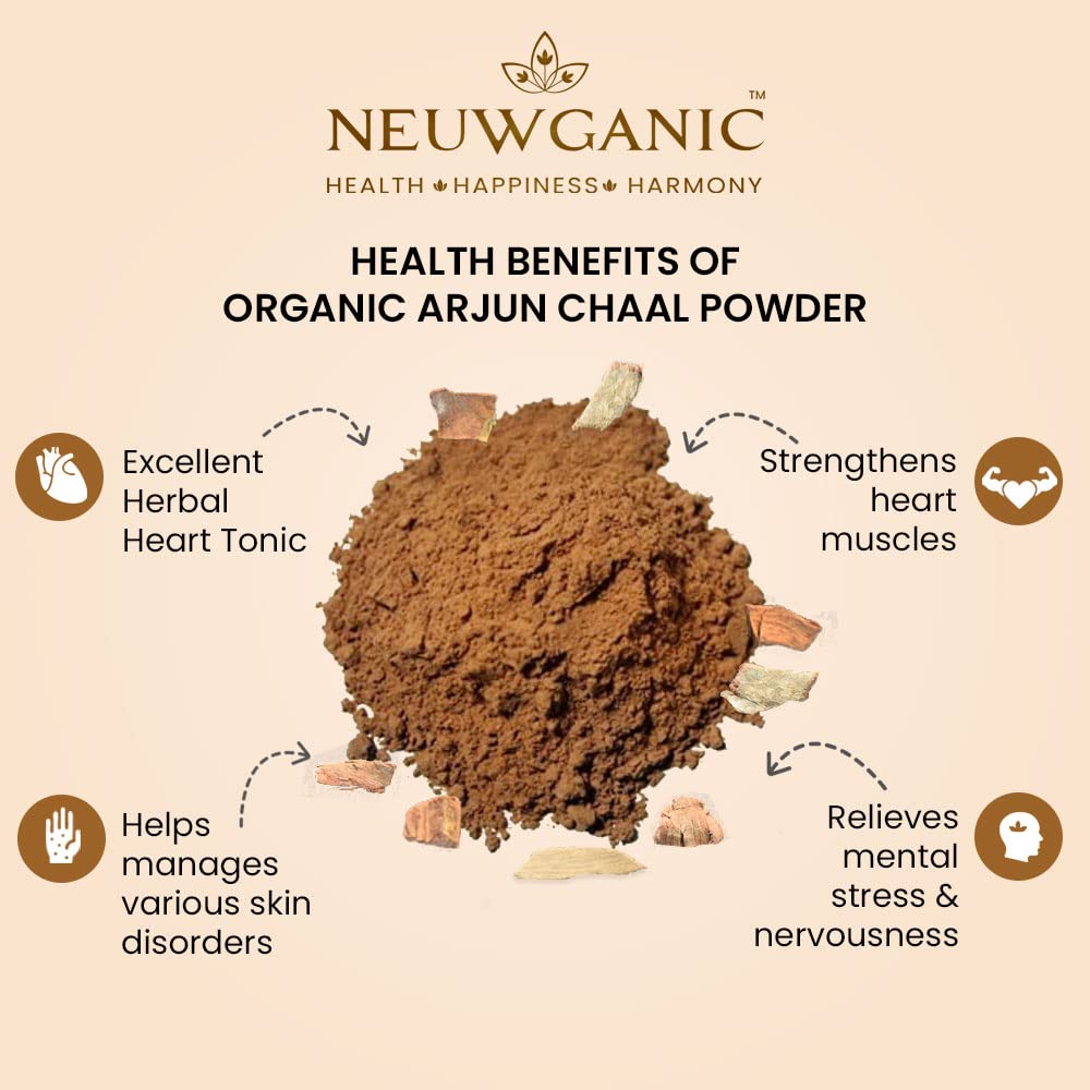 Neuwganic - Organic Arjun Chaal Powder - India Organic and Usda Organic Certified - Promotes Good Cholesterol - Arjun Powder - Arjuna Bark Powder - 200 Gm Pack of 1