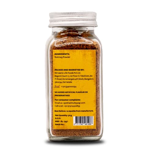 NUTTY YOGI Nutmeg Powder | Organic | Travancore purest | Source of antioxidants | 50gm (Pack of 1)