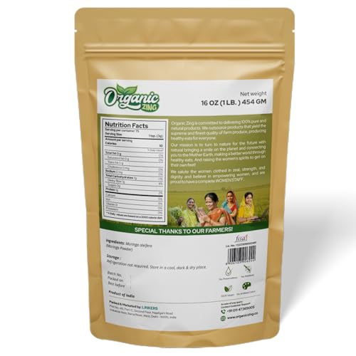 Organic Zing Moringa Leaf Powder | Moringa Powder| Pure and Vegan | Product of India - 454g
