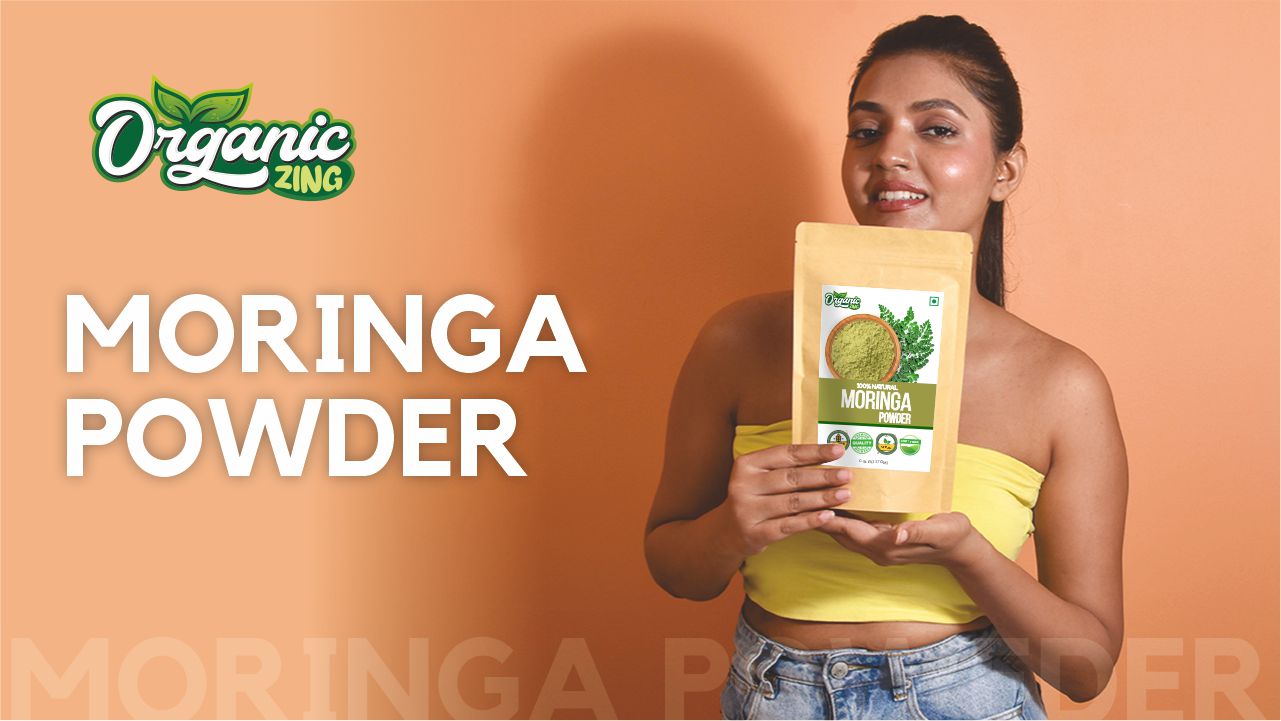 Organic Zing Moringa leaf Powder is made and packed in India.