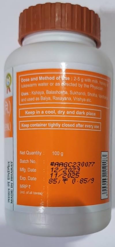 Patanjali Ashwagandha Churna a 100% natural herbal supplement is crafted to support vitality strength and energy. Known for its adaptogenic properties Ashwagandha helps reduce stress improve mental clarity and support immune health. Patanjali uses high-quality ingredients to ensure purity and effectiveness. Ideal for daily use this 100gm pack is easy to incorporate into your wellness routine. Simply mix with water milk or honey for best results. Patanjali Ashwagandha Churna is suitable for those seeking natural ways to enhance well-being making it a popular choice in Ayurveda.