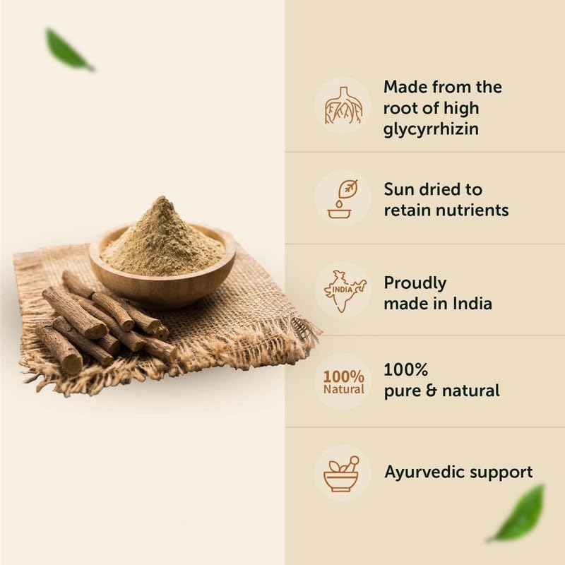 Pure Pik Mulethi or licorice powder is 100% natural Mulethi powder. Prepared from high-quality mulethi roots which are dried and processed naturally. It is free from any preservatives or chemicals.