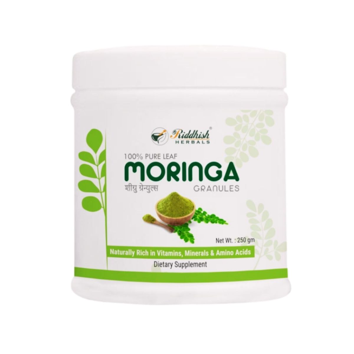 Moringa (Shigru) is a nutritionally rich green superfood containing many vitamins and miner. Moringa is rich in Amino acids which are the molecules that combine to form proteins. Amino acids and proteins are building blocks of life. You can support your health by taking Moringa Granules daily.