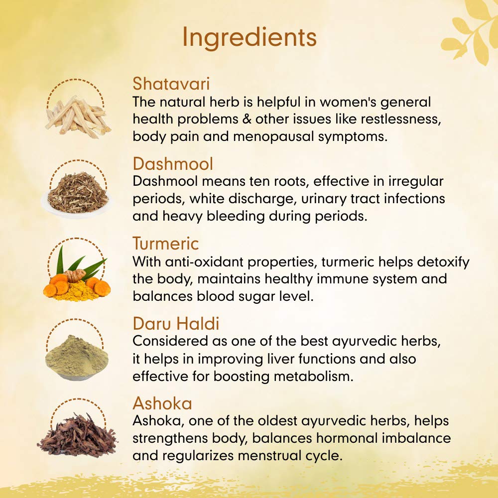 Ingredients : arjuna ashoka shatavari units : 190ml x 2 and it's easy to use.