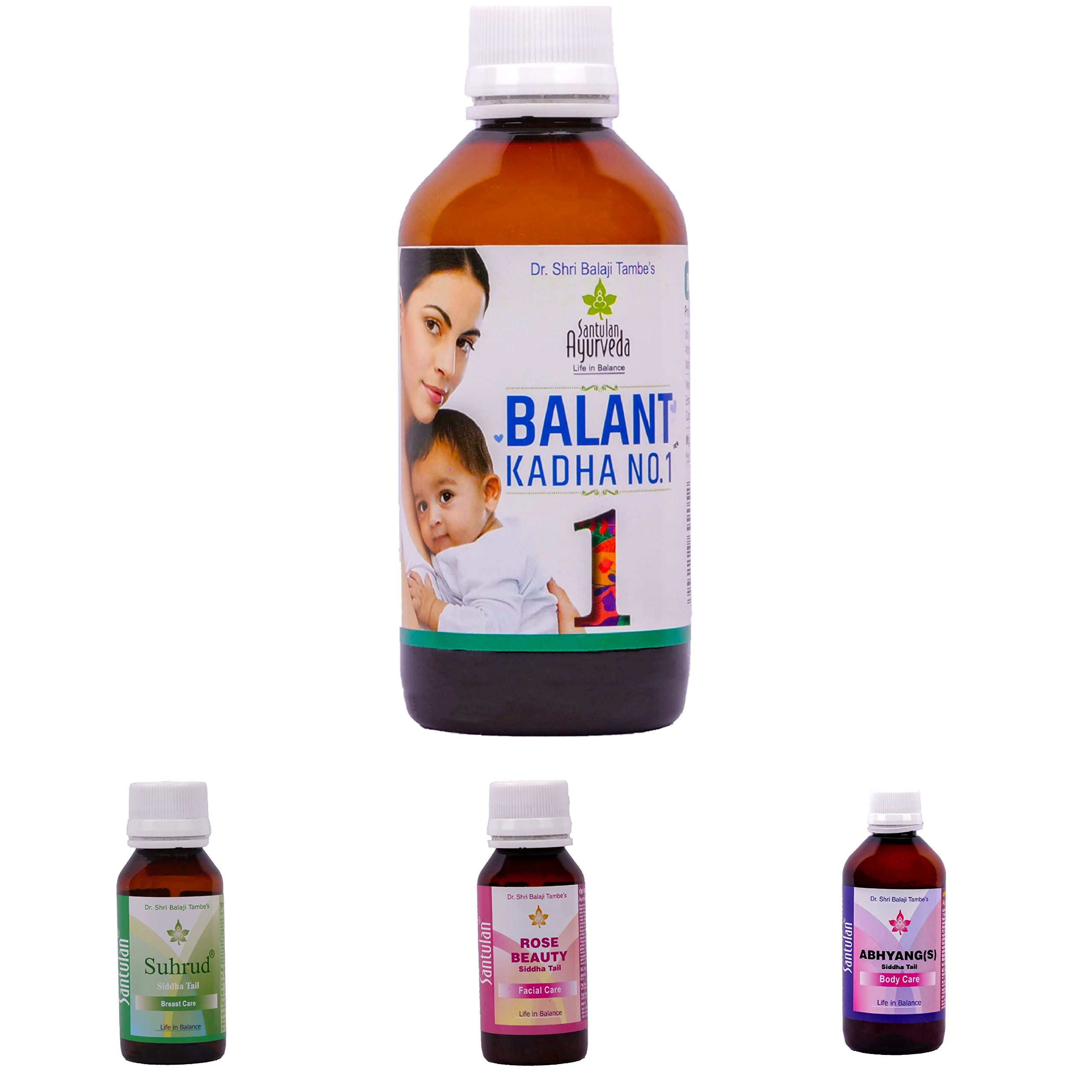 HomeHealth & PersonalDiet & NutritionHerbal FormulationsSantulan Ayurveda Balant Kadha No 1-200ML and Combo Pack Of Abhyang Oil(S)-200ML Rose Beauty Oil-50ML Suhrud Oil-50ML Care Combo and get Golden Oldie HerbsSukanthi Pills-1gm