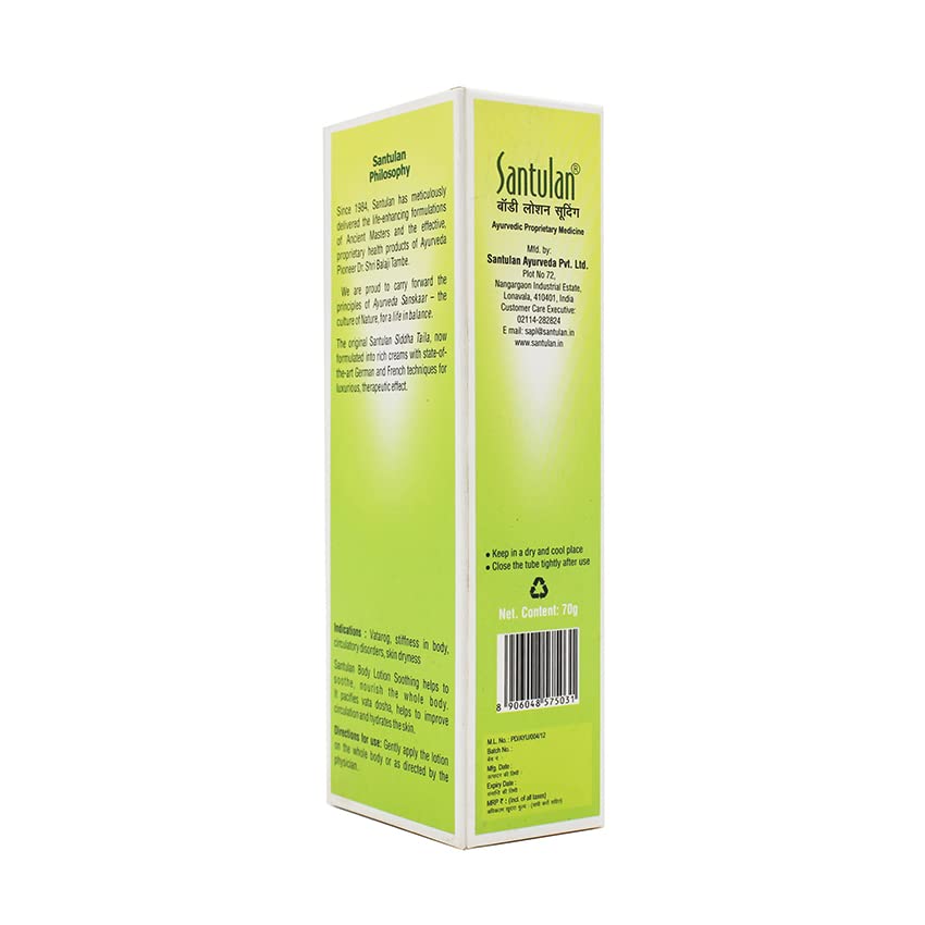 Santulan Ayurveda Body Lotion Sothing-70GM Each (Pack Of 1) For Skin Dryness And Vata-rogas and get Golden Oldie HerbsSukanthi Pills-1gm