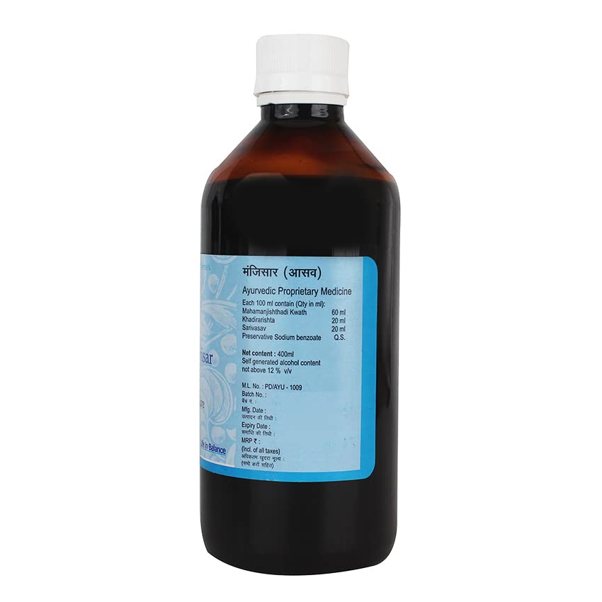 Santulan Ayurveda Manjisar Asav-400ML Each (Pack Of 2) Skin Care and get Golden Oldie HerbsSukanthi Pills-1gm